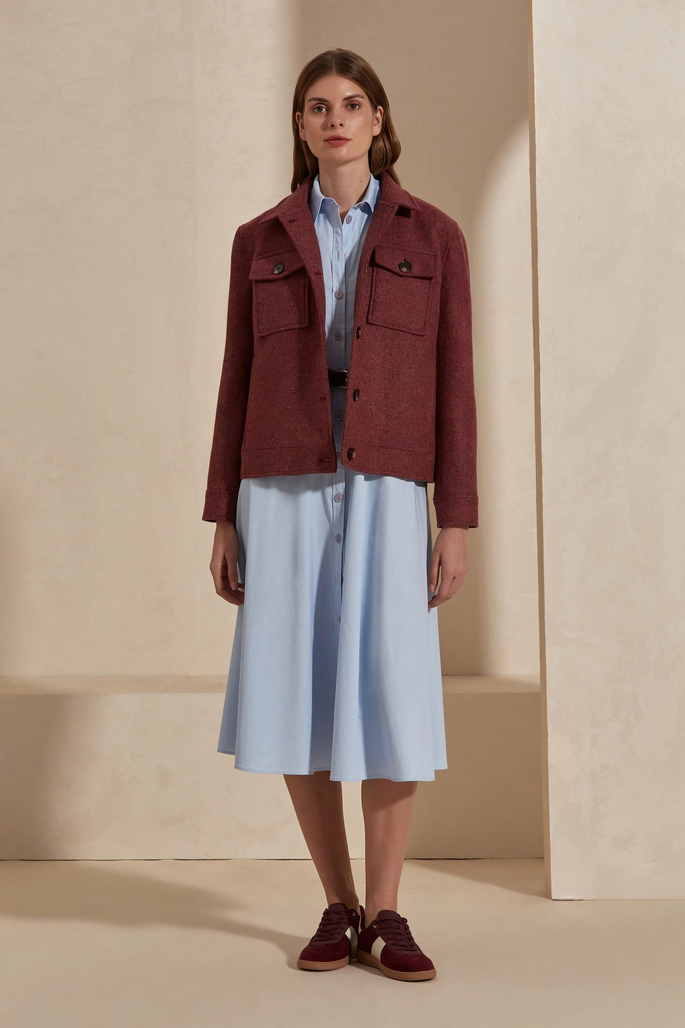 Clarisse yün ceket, şıklığı pratiklikle buluşturan modern bir parça. Düğme ve cep detaylarıyla tasarıma dinamizm katarken, rahat kesimi sayesinde gün boyu konfor sunar.