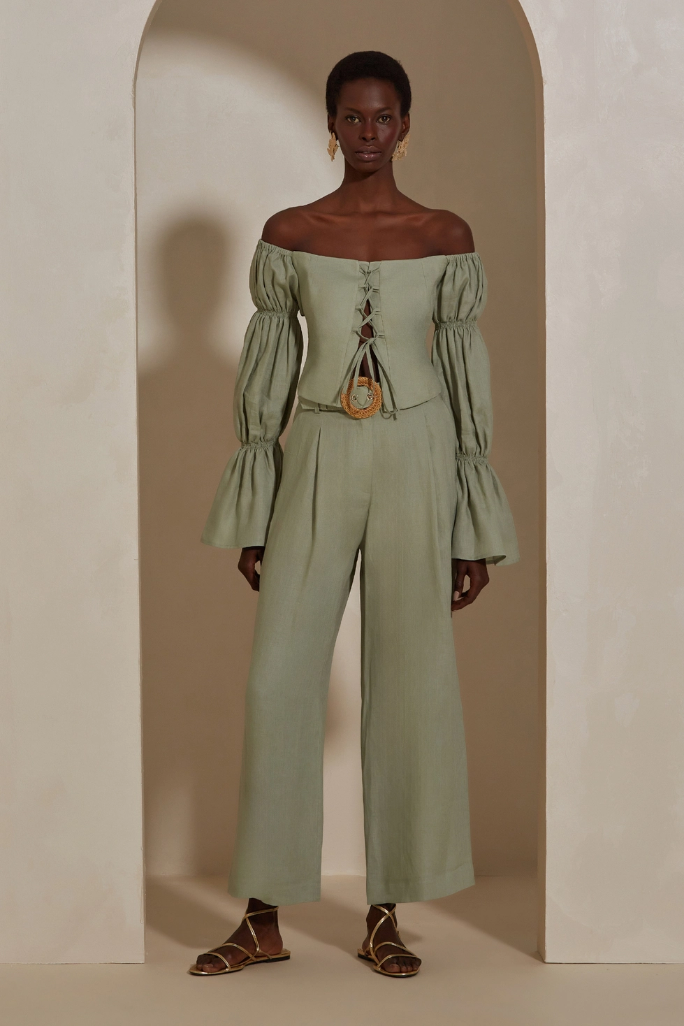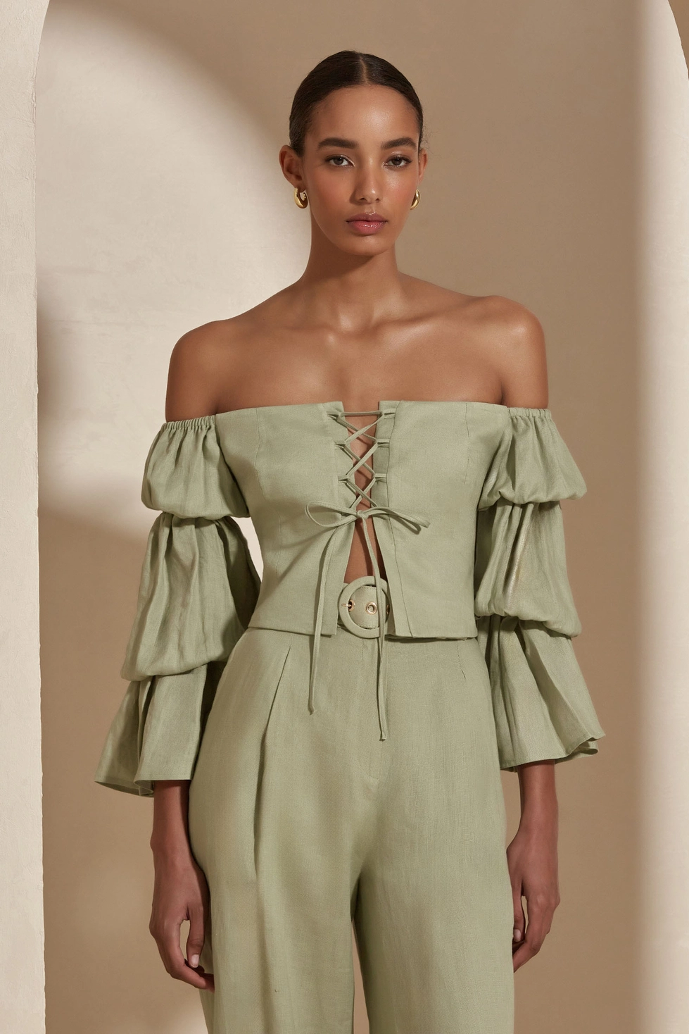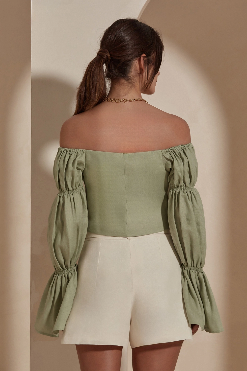 Coco Bluz, stiline esneklik katan uzun kollara sahiptir ve omuzlar istenildiği gibi aşağı veya yukarı doğru kullanılabilir. Ön kısmında çapraz bağcıklı detaylar bulunur, bu da kıyafete zarif bir hava katar.