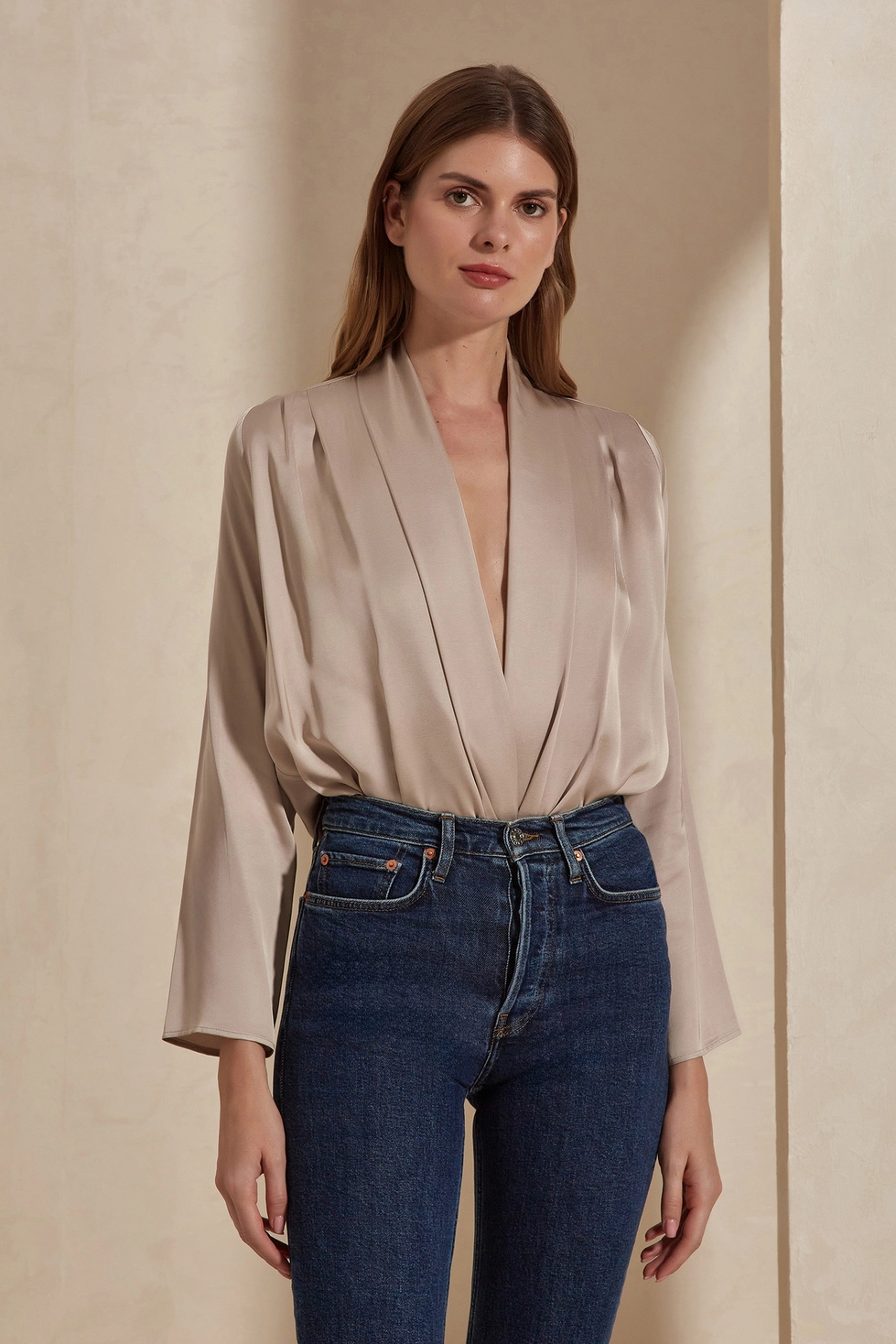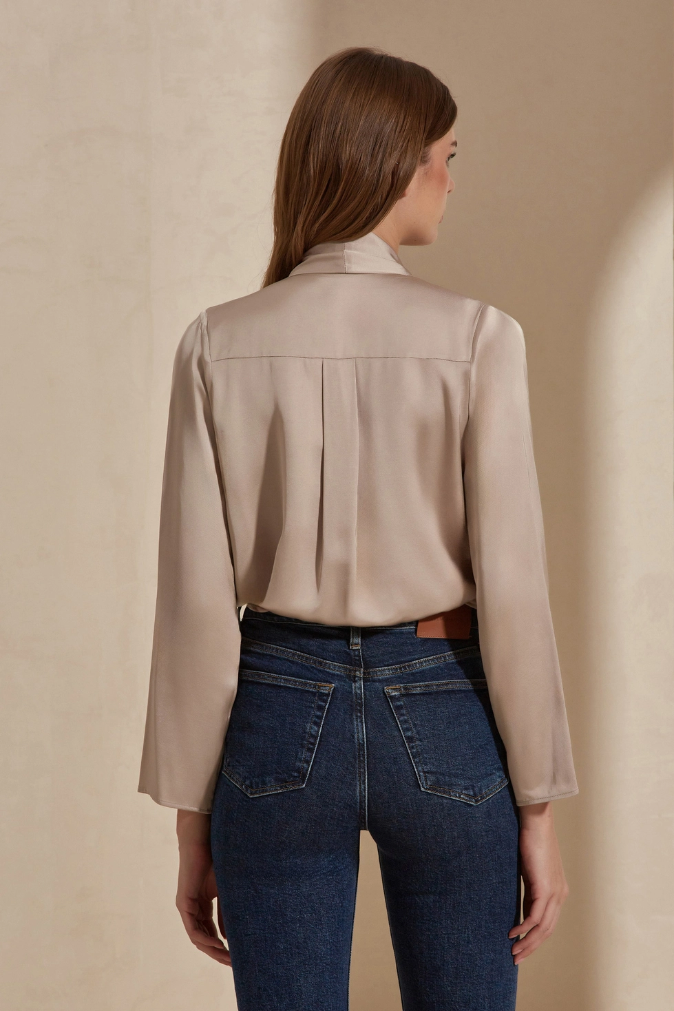 Cybill Gömlek, şal yaka tasarımıyla dikkat çeken ve düğmesiz, dilediğiniz gibi kruvaze şeklinde giyilebilen özel bir gömlektir. Bu gömlek, benzersiz ve çok yönlü yapısı ile gardırobunuza dinamizm katıyor.