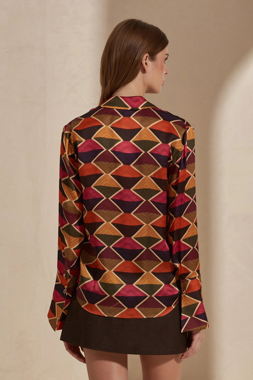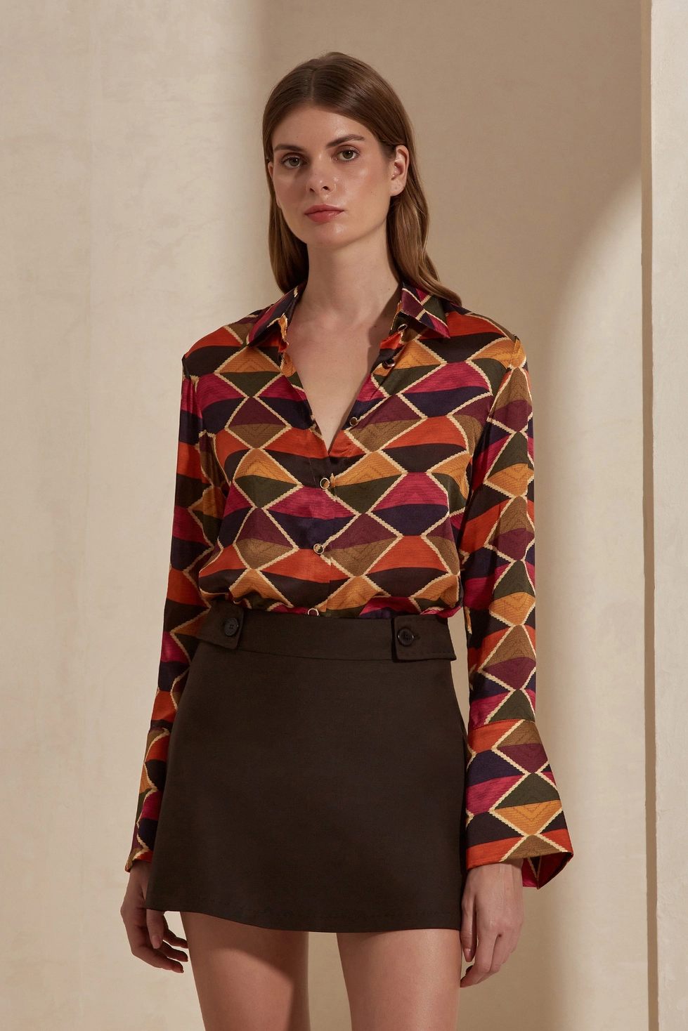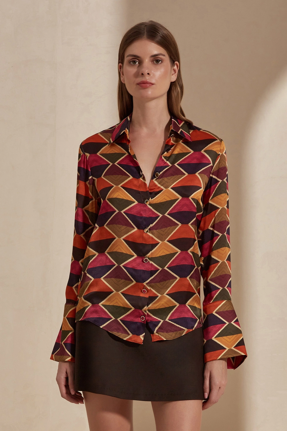 Alice gömlek, rahat bir kesime sahiptir. Arkası daha uzun ve yuvarlak bir etek şekline sahiptir. İsterseniz Marsilia Pantolon ile uyumlu bir takım oluşturabilir veya farklı kombinasyonlarla tarzınızı tamamlayabilirsiniz.