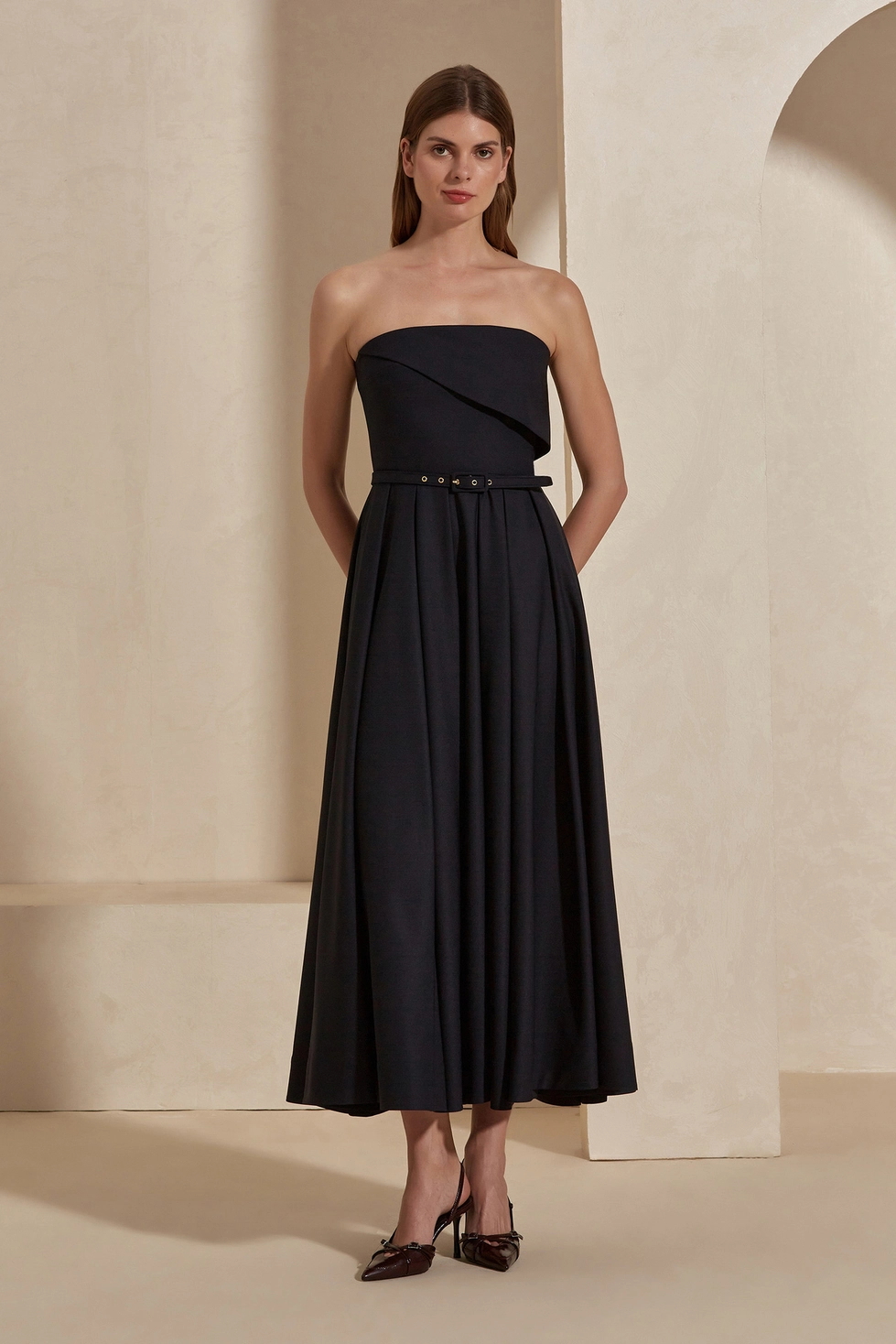 Daisy Elbise, zarif midi kesimi ve yün karışımlı kumaşı ile; klasik şıklığı zahmetsizce modern bir tavırla birleştiriyor. Beldeki ince kemeri feminen bir dokunuş katar. Dökümlü eteğiyle zarafeti modern bir duruşla birleştirir.