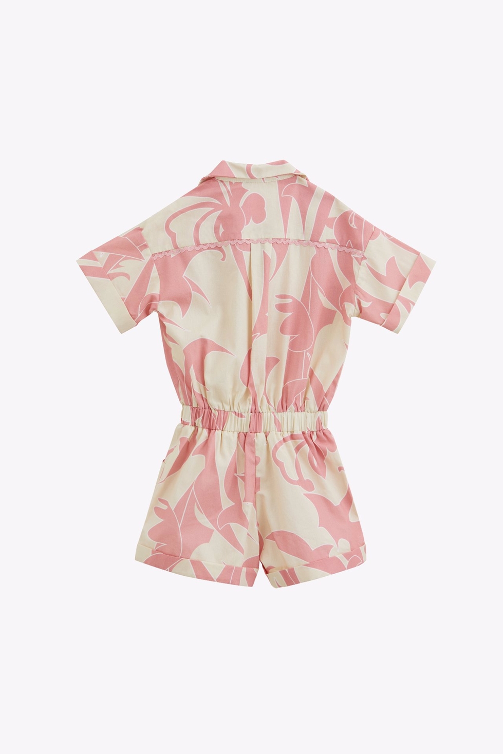 "Dahlia Bianca' s crafted entirely from unique fabric and featuring an all-over print, Leah romper has short sleeves and an elasticated drawstring waist. It has patch pockets and a cutest little stitch details. "