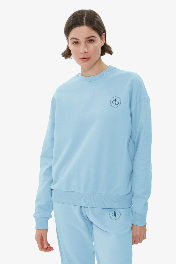 Bebek Mavisi Bisiklet Yaka Basic Sweatshirt