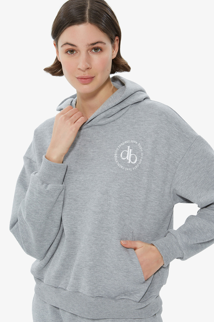 Gri Kapüşonlu Fermuarlı Sweatshirt