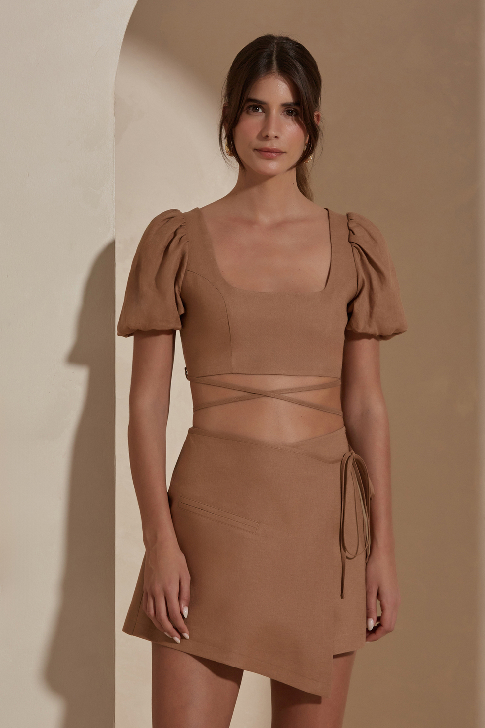 Isolde Blouse'un kare yakalı tasarımı, modern ve zarif bir hava yaratırken, bluzun puf kolları ve ince bağlama askılarıyla sabitlenen açık sırt detayı, cesur bir tarzı öne çıkarıyor