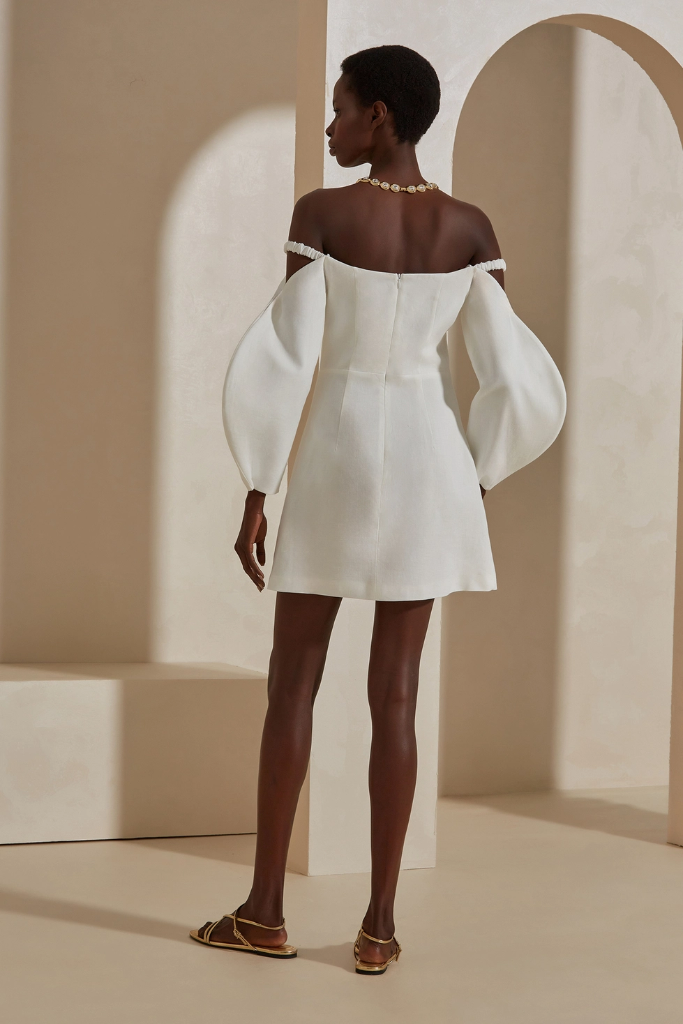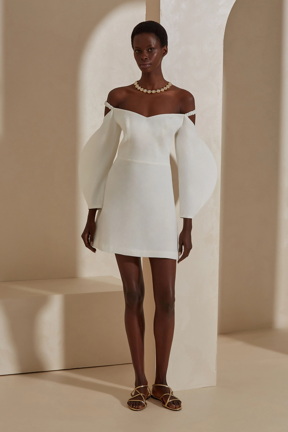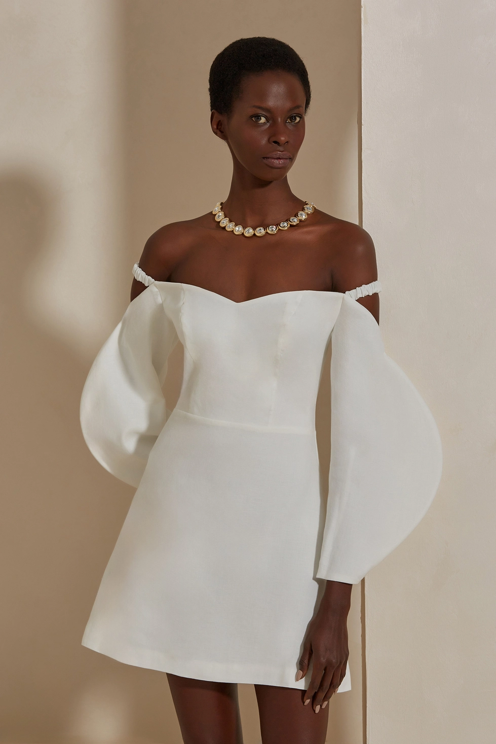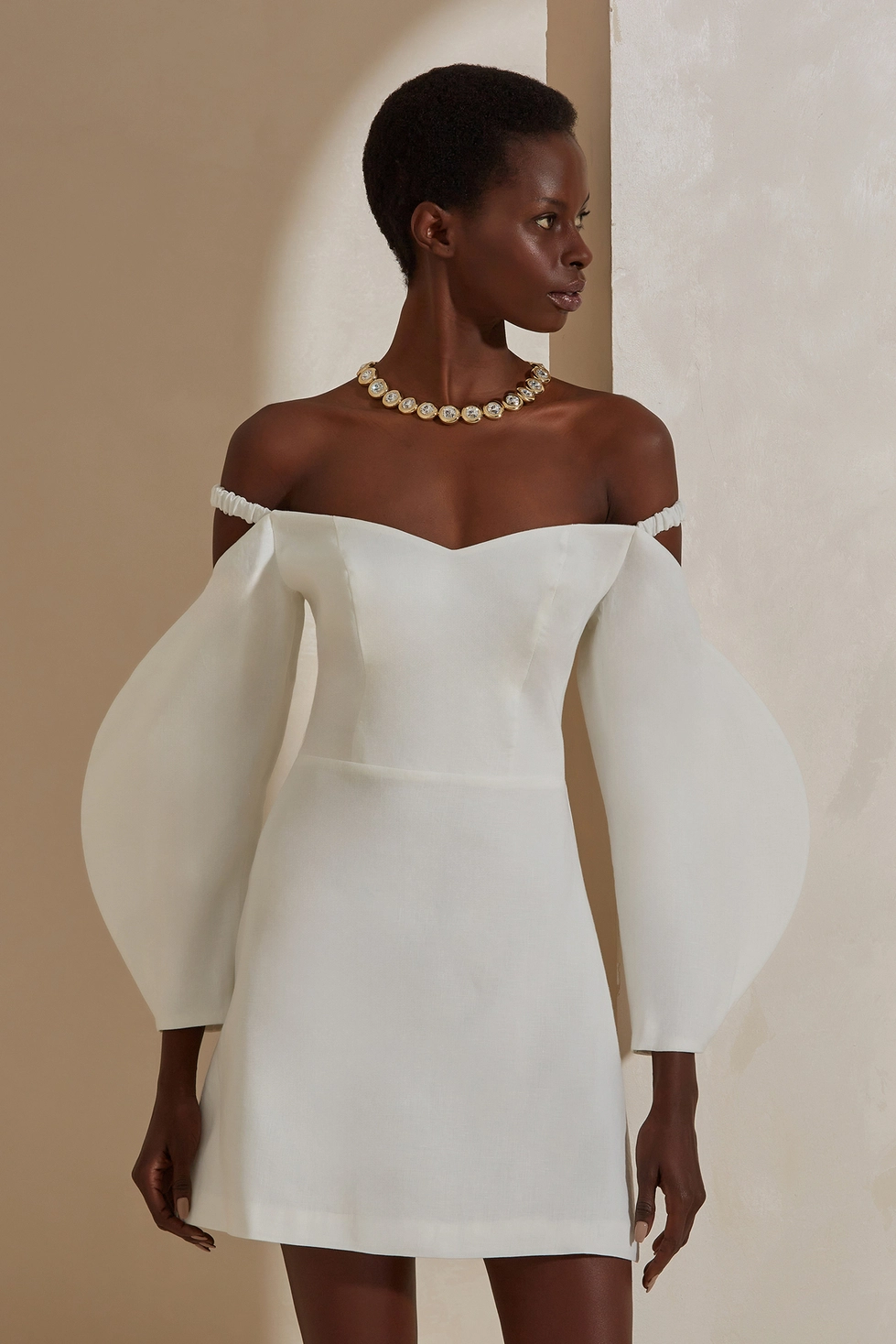 Maya Elbise, dikkat çeken eşsiz tarzıyla öne çıkar. Elastik kayışlarla tutulan omuzları açıkta bırakan balon kolları, modern ve feminen bir görünüm sağlar. Etek kısmı ise vücuda hoş bir şekilde oturarak dar iner.