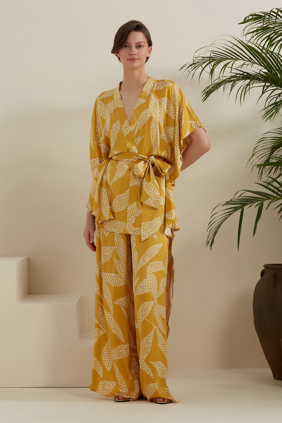 Naomi Kimono will be a hero item in your warm-weather wardrobe. The kimono-style piece is crafted from airy viscose. It has comfortable and relaxed fit that ties at the waist. Style with matching pants and sandals for a relaxed yet stylish approach to vacation dressing.