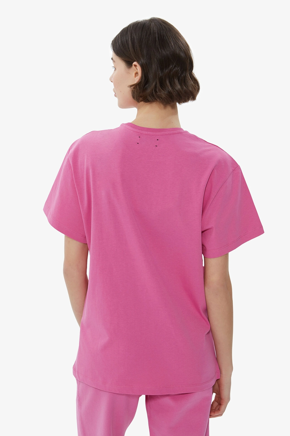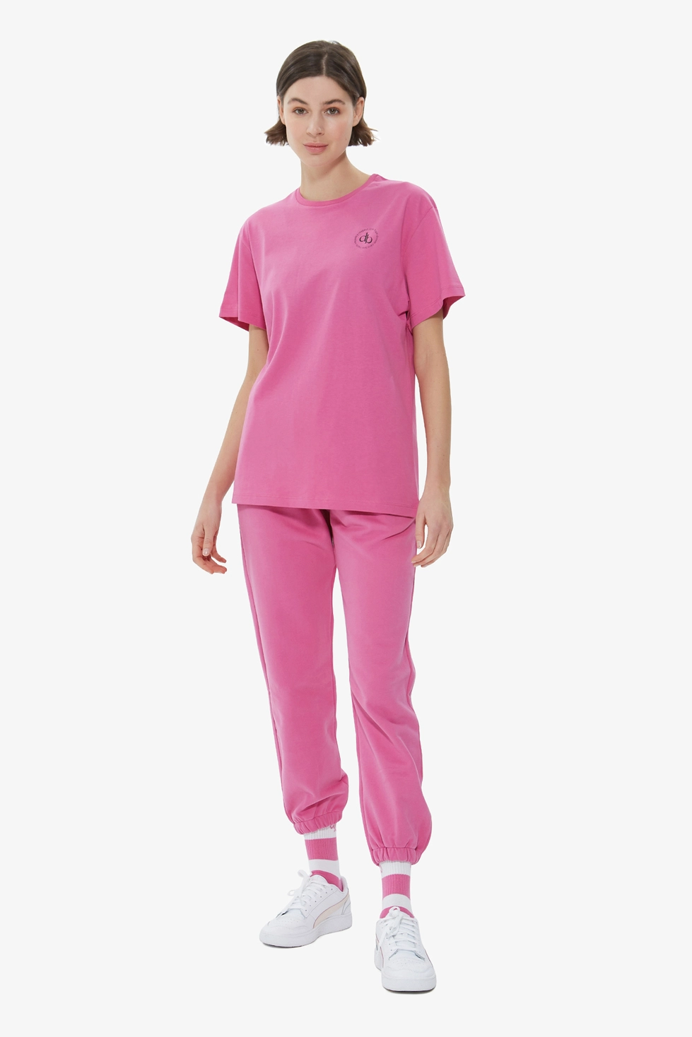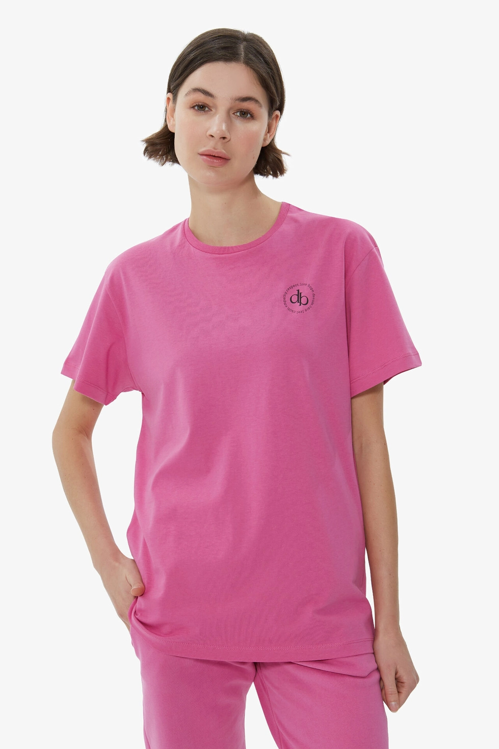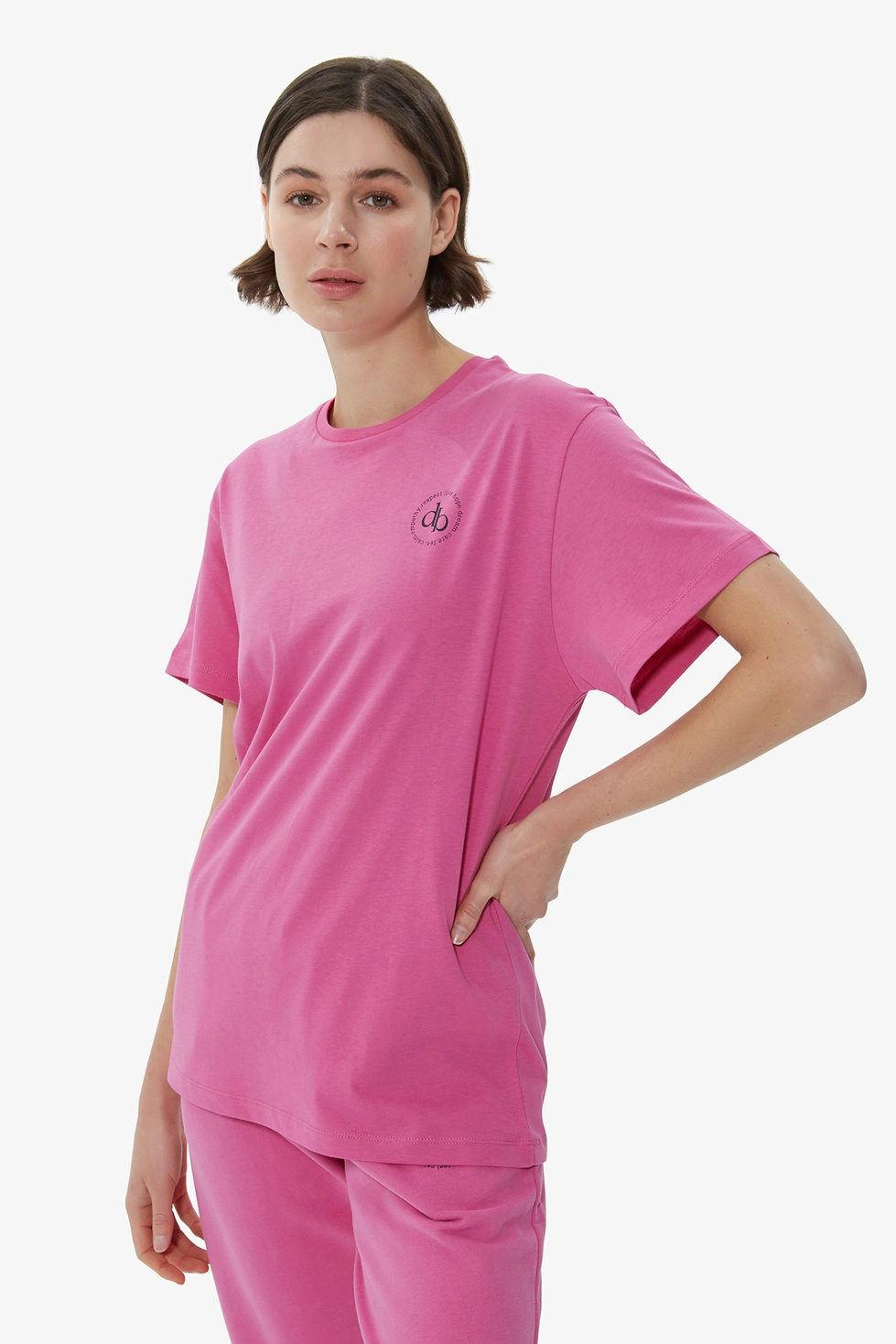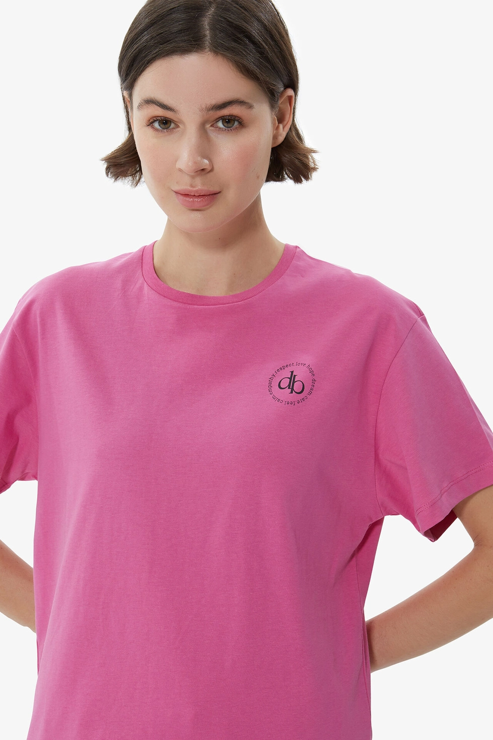 Pembe Ön Baskılı Bisiklet Yaka Basic T-shirt