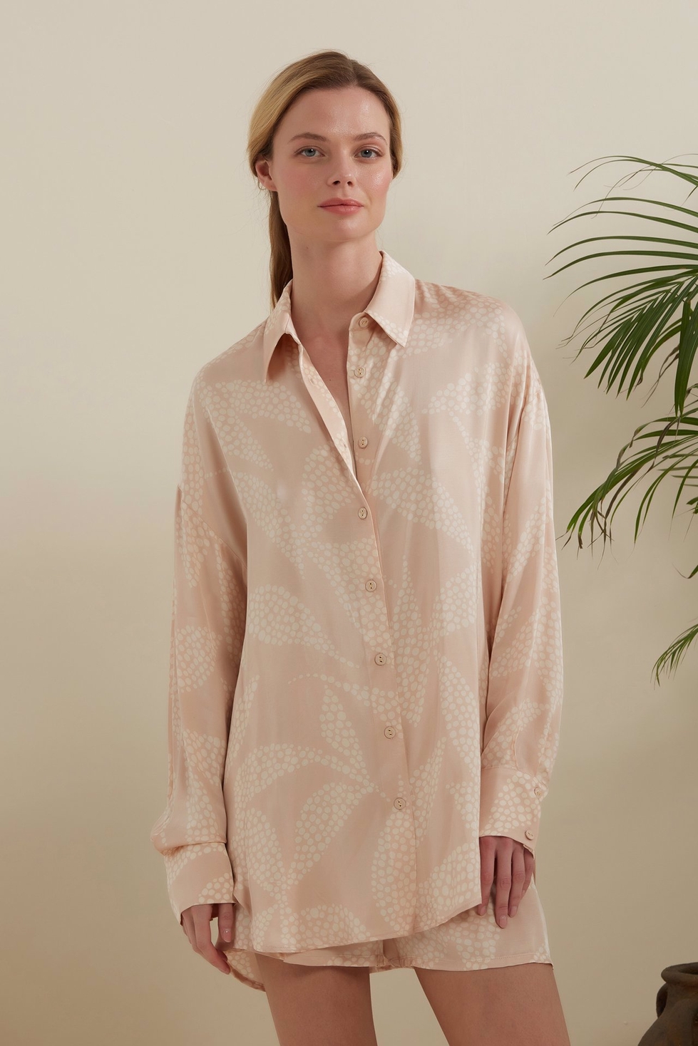 Dahlia Bianca'nın basic gömlekleri zamansız silüetler ve kalıcı kalite ile tasarlanmıştır, bu nedenle onları sık sık giyeceğinizden emin olabilirsiniz. Bu 'Penelope' gömlek, rahat bir uyum için ipeksi viskozdan yapılmıştır ve arka kısmı daha uzun olan yuvarlak bir etek ucuna sahiptir. Eşleşen şortlarla, eteklerle kombinleyin