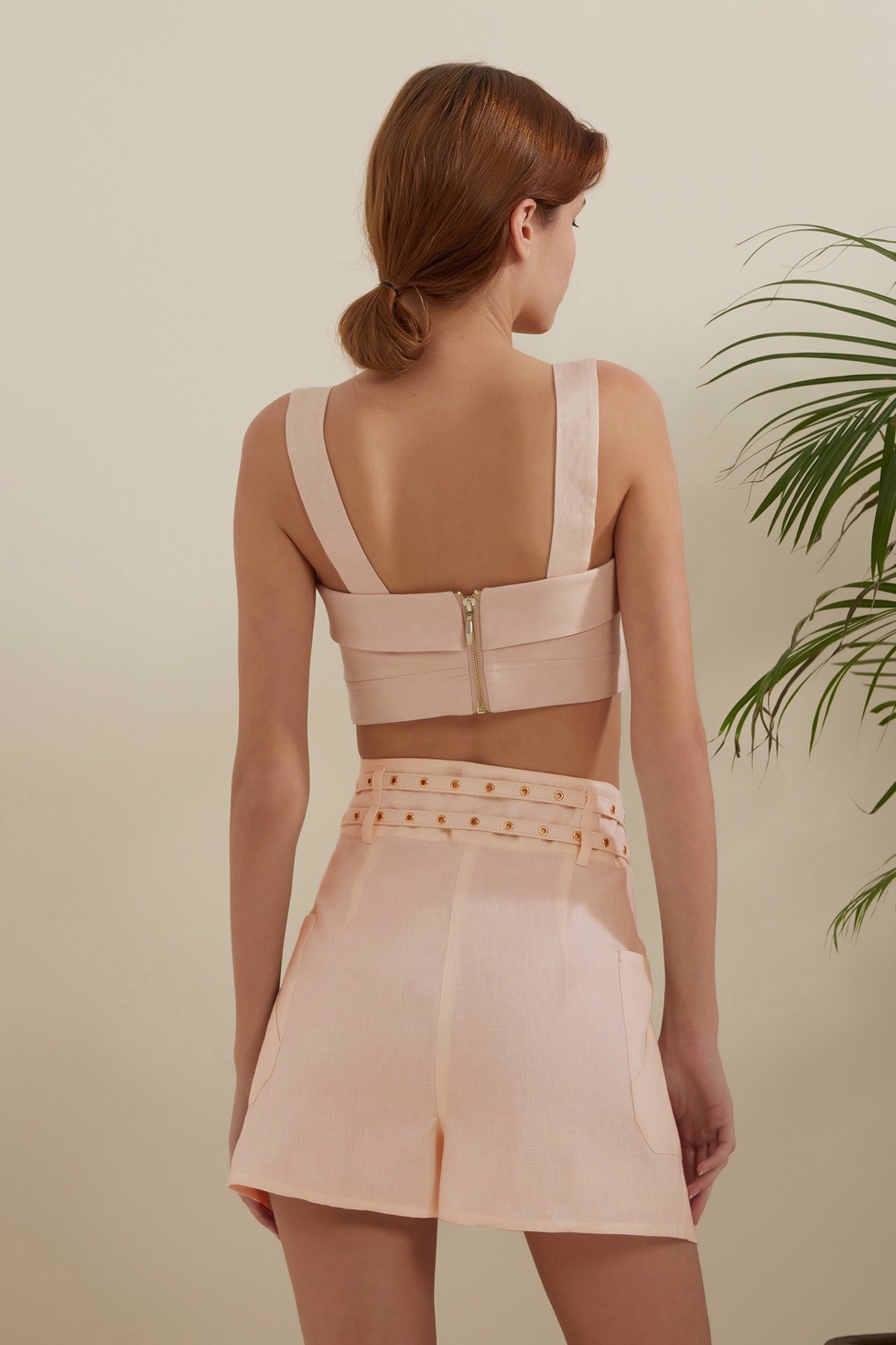 Shayna büstiyer, iç çamaşırı öğelerini ödünç alarak, gurur verici, romantik bir silüet ortaya çıkarır. Destek için iç balene ve arkada fermuar kapatmaya sahiptir. Crop büstiyerinizi yüksek bel altlar ile kombinleyebilirsiniz.