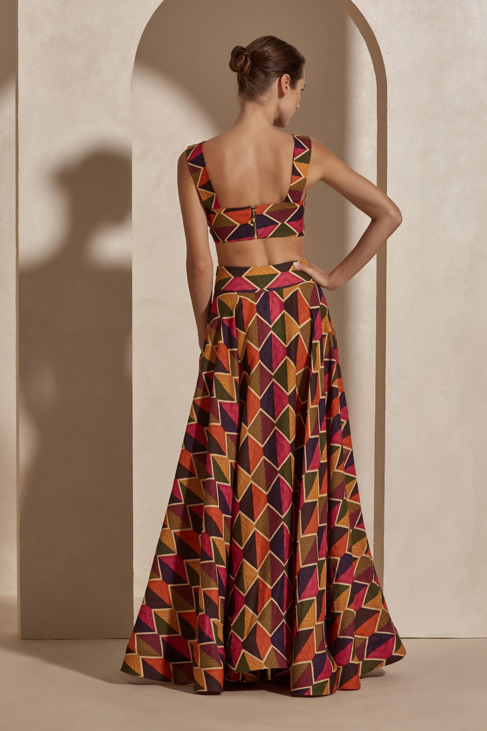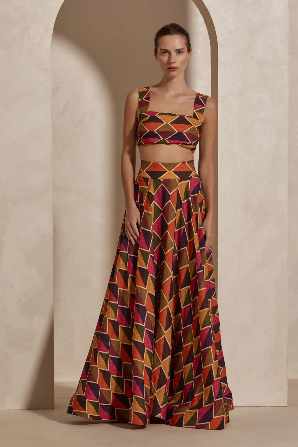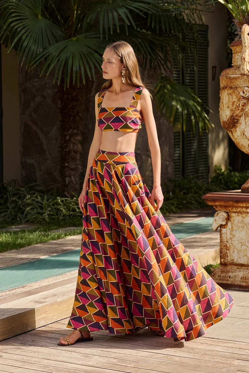 Tamina etek, zamansız bir görünümü hedef alarak tasarlanmıştır.Bu maksi boy etek viskondan üretilmiştir. Gren detaylı etek ucuna sahiptir. Aynı desenden Leighton bluz ile kombininizi tamamlayabilirsiniz.