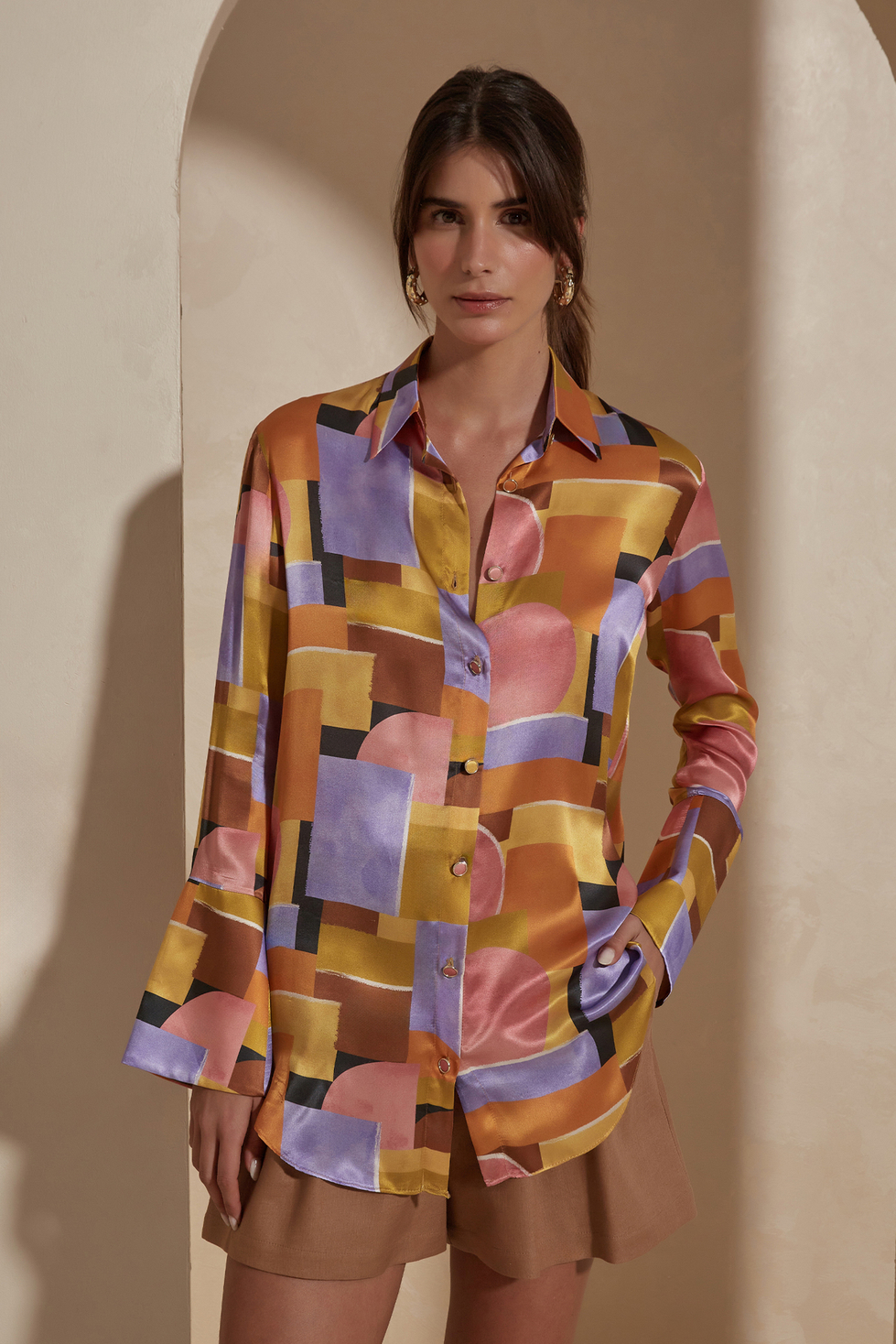 Alice gömlek, rahat bir kesime sahiptir. Arkası daha uzun ve yuvarlak bir etek şekline sahiptir. İsterseniz Marsilia Pantolon ile uyumlu bir takım oluşturabilir veya farklı kombinasyonlarla tarzınızı tamamlayabilirsiniz.