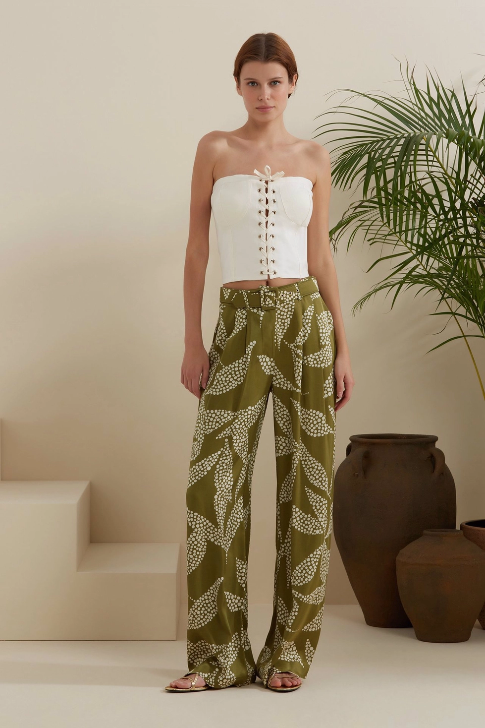 Alina pantolon, sıcak günler için şık ve rahat bir seçimdir. Sade ve çok yönlü bu pantolonun düz geniş paçası, hafif yapısı ve doğal nefes alabilirliği sayesinde yaz aylarında gardrobunuzun vazgeçilmez parçası olmaya hak kazanıcaktır