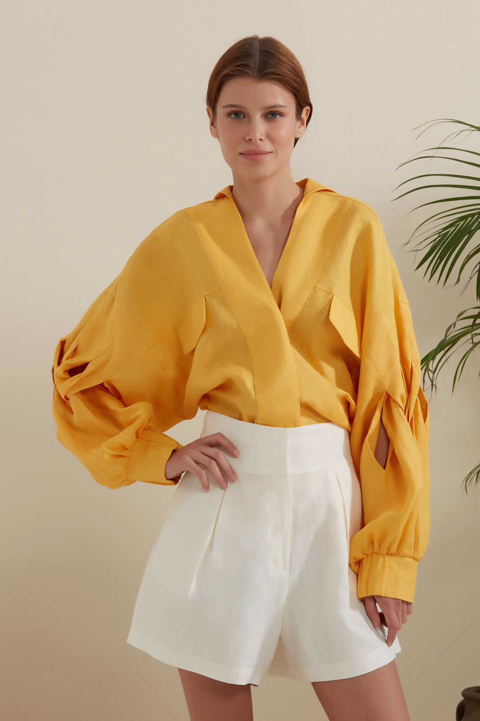 Beatrice gömlek, sıcak aylarda giymeyi seveceğiniz zamansız bir temel parçadır. Rahat kesimiye üzerinizde yokmuş gibi hissettirir. Doğal olarak nefes alabilen ketenden yapılmıştır ve kemik düğmelere sahiptir.