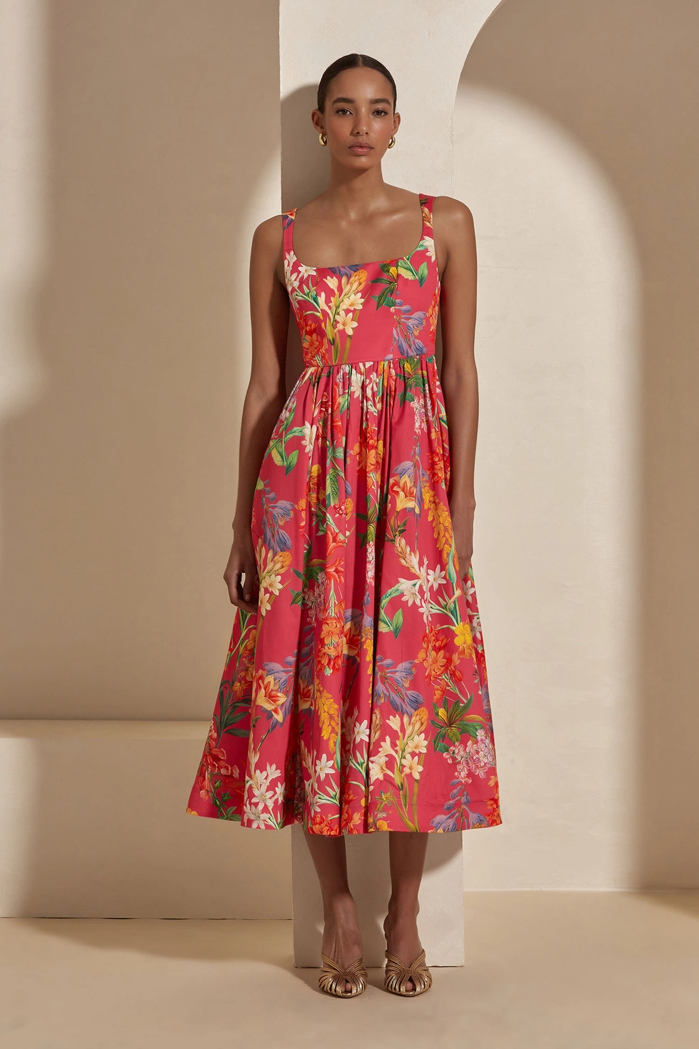 Ciena elbise, zarif midi boyu ve şık çiçek desenleriyle her anınıza sofistike bir dokunuş ekler. Hem şıklığı hem de rahatlığı bir arada sunan bu elbise, gardırobunuzun vazgeçilmez parçalarından biri olacak.