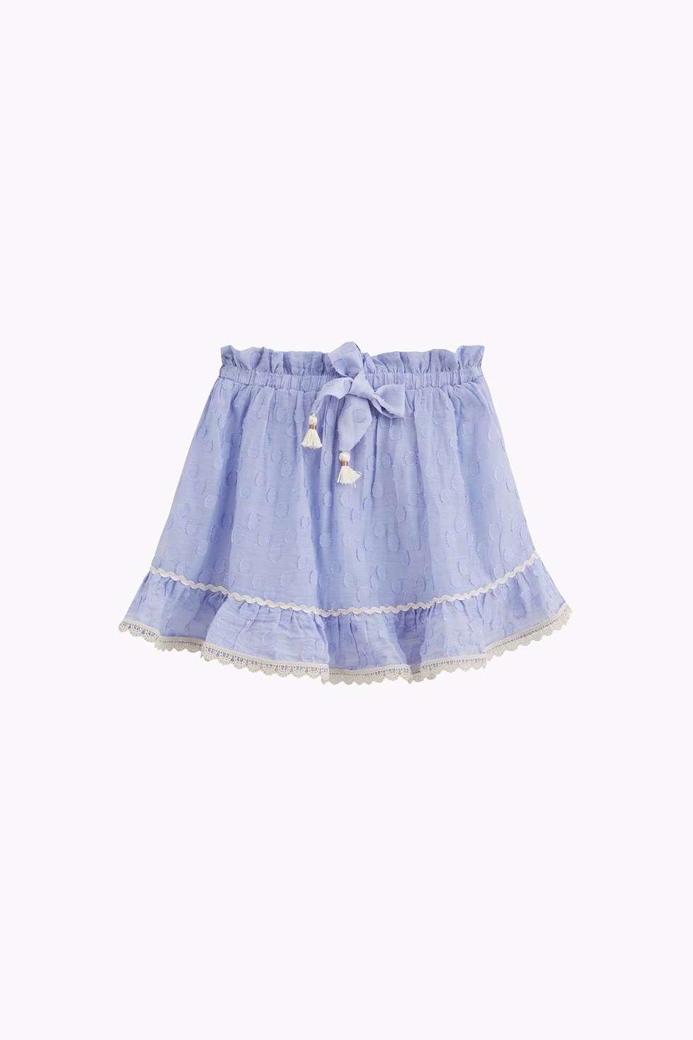 Dahlia Bianca's Ellie skirt is made from hypoallergenic viscose. It has elasticated waistband with self-fastening ties. It has ruffle hem. That skirt is perfect for your little one's allowing a comfortable.