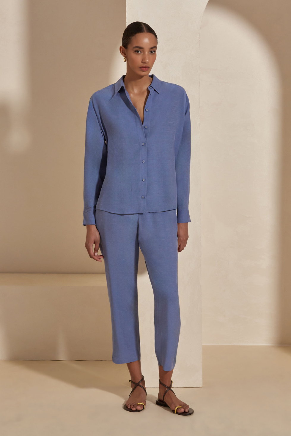 Dalida shirt, made from a blend of cupro and viscose fabric, is a comfortable and elegant choice. The back slit detail adds a modern touch to the shirt.