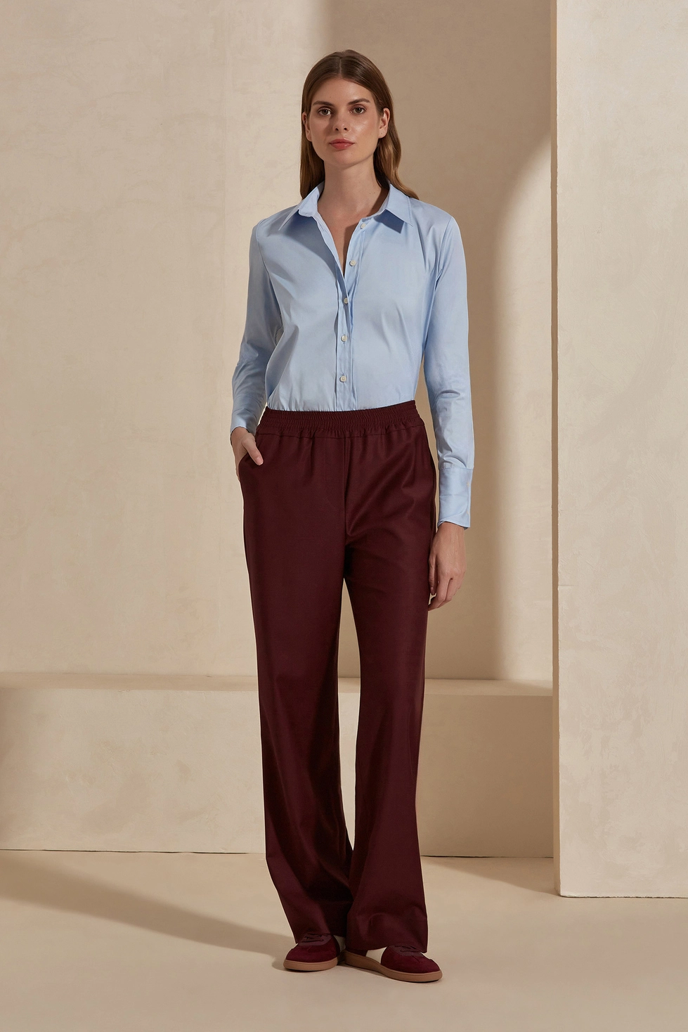 Miranda bol paça pantolon, zarif tasarımı ve rahat kalıbıyla hem günlük kombinlerinizde hem de özel davetlerde stilinize modern bir dokunuş katıyor. Yüksek bel kısmındaki lastikli yapısı gün boyu konfor sağlarken, dökümlü ve geniş paça kesimi şık bir siluet oluşturuyor.