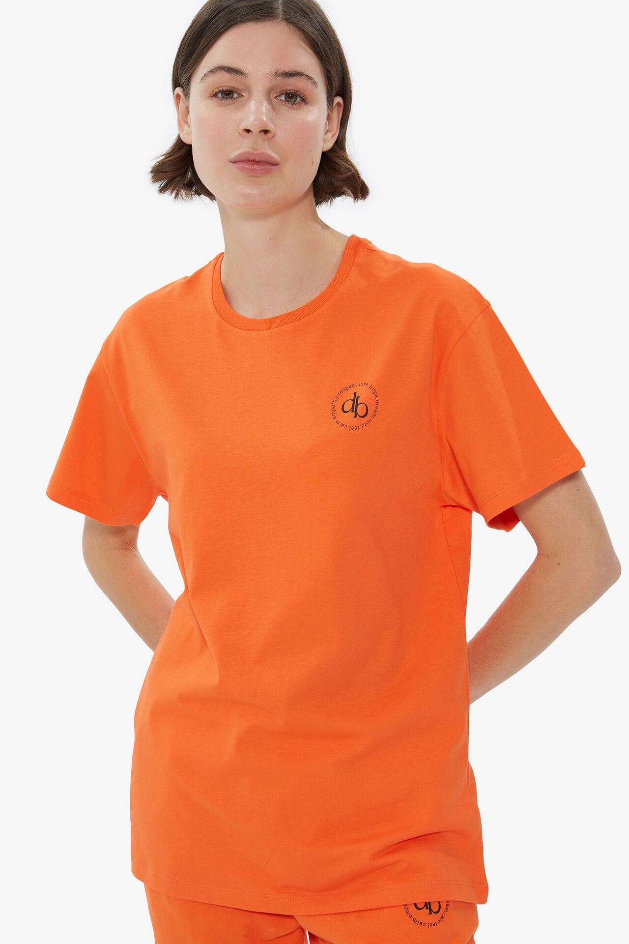 Turuncu Ön Baskılı Bisiklet Yaka Basic T-shirt