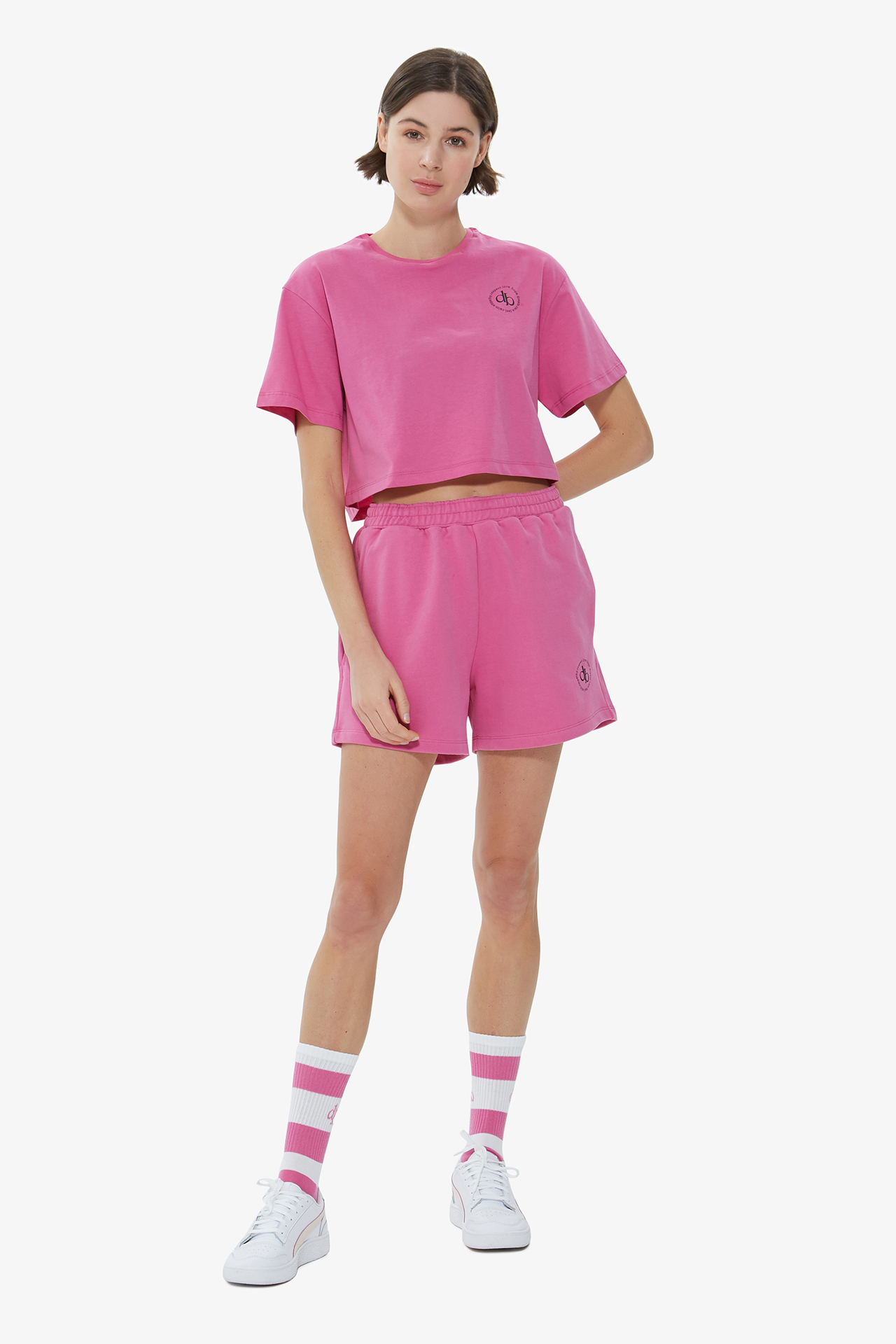 Zamansız bir tarz, canlı renklerin enerjisi ve ikonik 'db' monogramın zarafetiyle harmanlanıyor. Bu crop T-shirt, günlük stilinize modern ve çarpıcı bir hava katıyor.