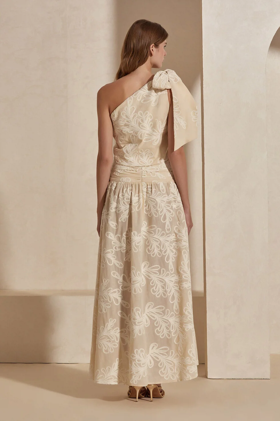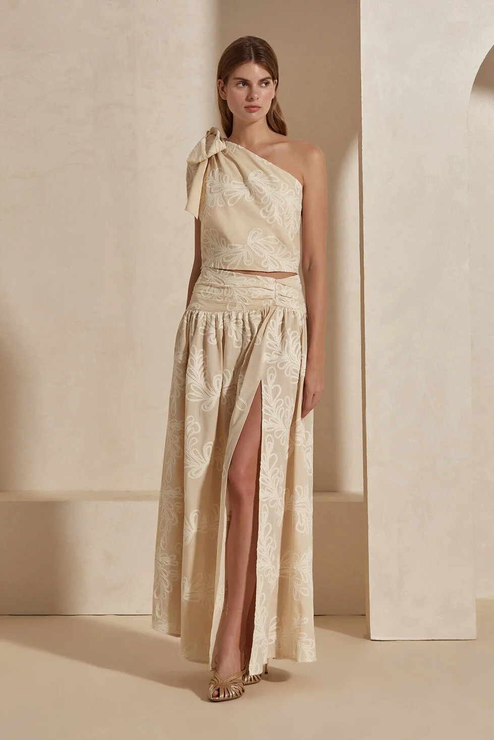 The Cleo Skirt stands out as one of the most sophisticated pieces in the collection, bringing together natural textures with artisanal elegance. Elegant floral embroideries on its 100% cotton fabric add depth and a romantic atmosphere to the design. The slit detail, which exhibits a bold and noble stance, combines with the draped cut to offer a free and fluid movement at every step. Creating a perfect set when combined with the River Blouse, the Cleo Skirt promises a captivating silhouette for both special occasions and your polished daily style.