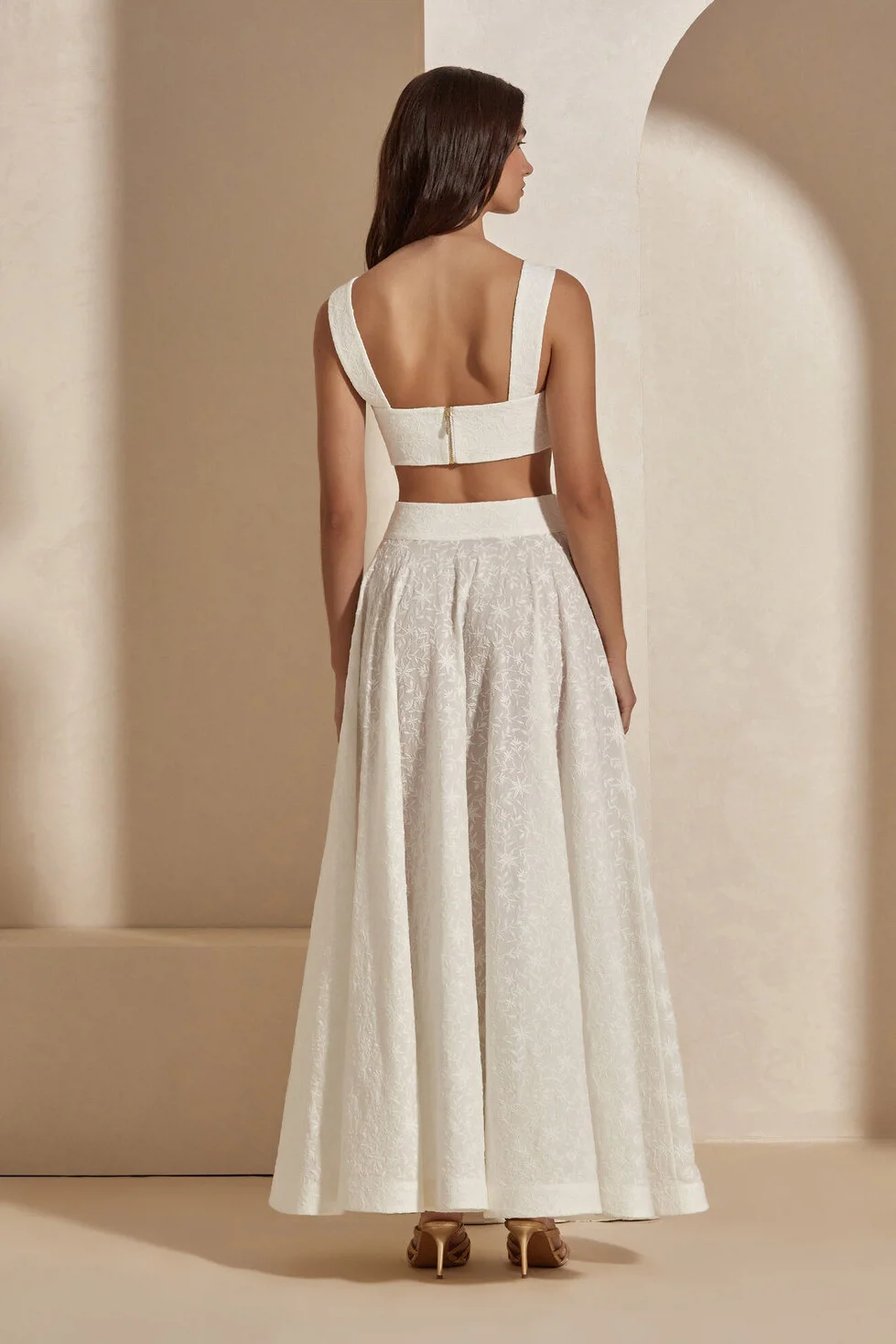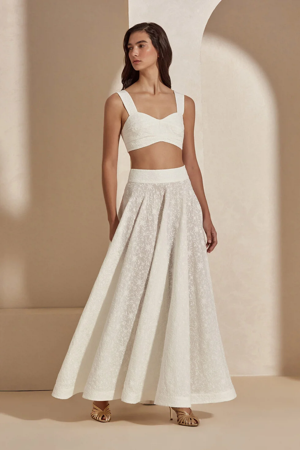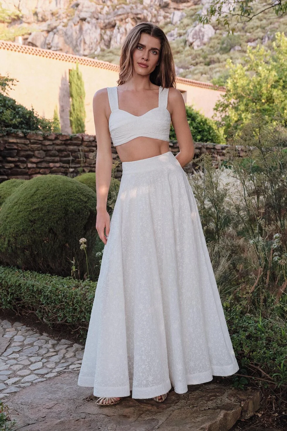 The Monique Skirt is designed for you to carry the unique glow and serenity of summer evenings with every step. While the elegant broderie details in its fabric add a timeless depth to the white, its flowing and majestic form gives your style a fairy-tale atmosphere. The holistic elegance that emerges when combined with the Leighton Blouse is not just an outfit; it creates a silhouette that will accompany the most beautiful memories of summer. At those special events stretching from sunset to night, you will feel both very free and very special with Monique's lightness and pure grace.