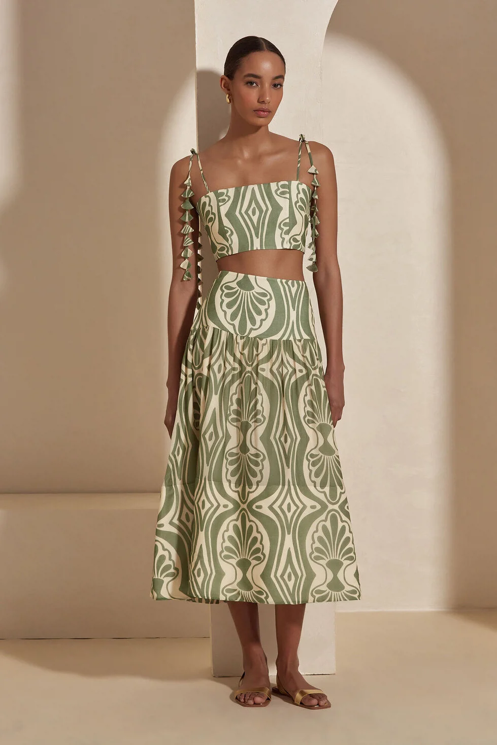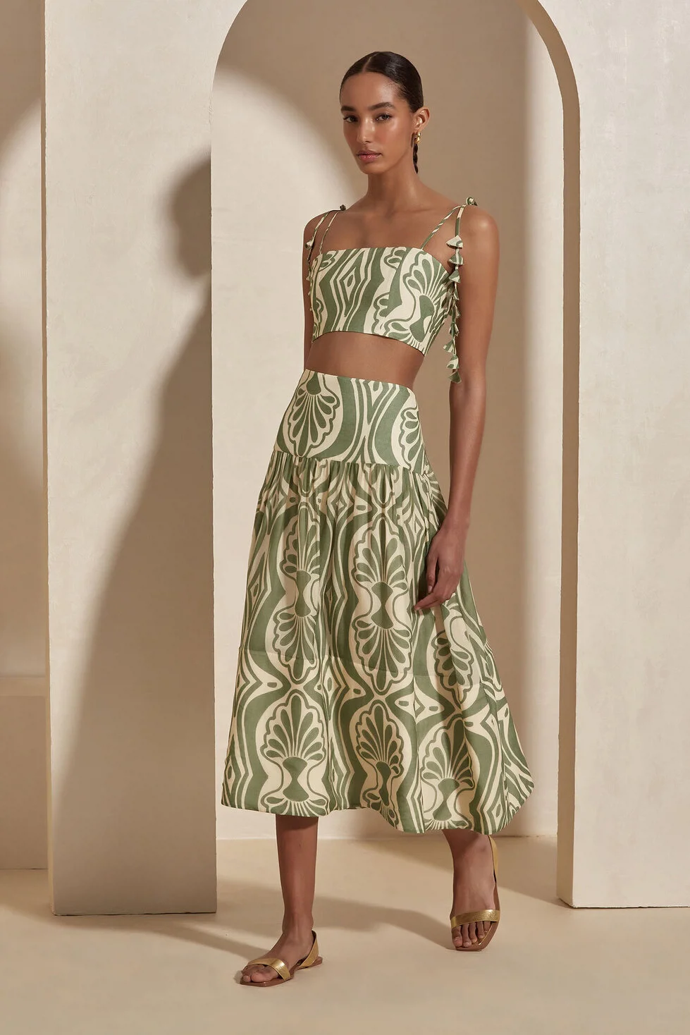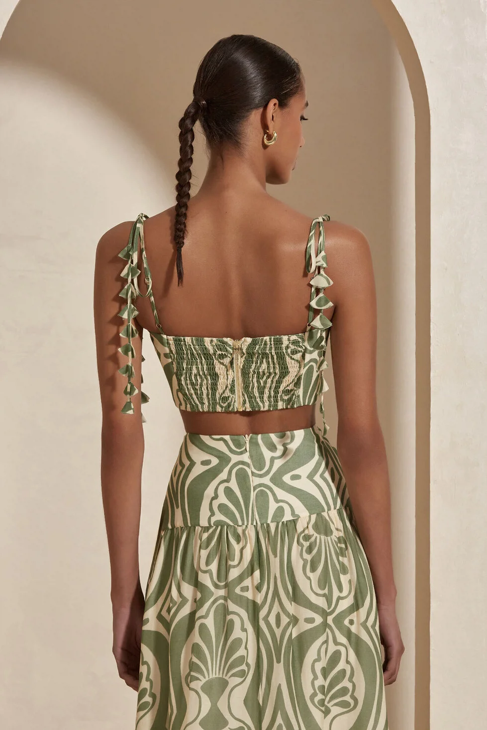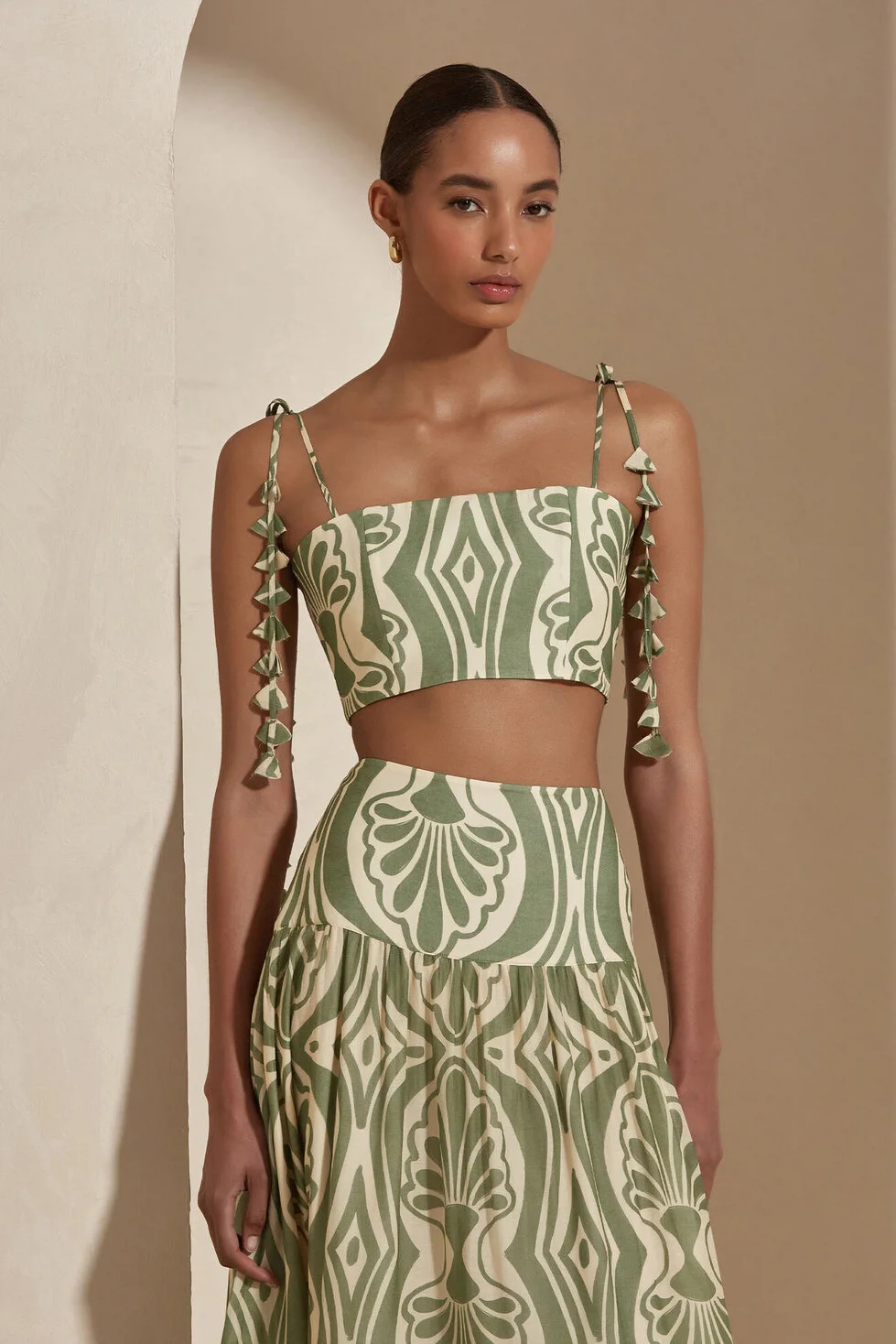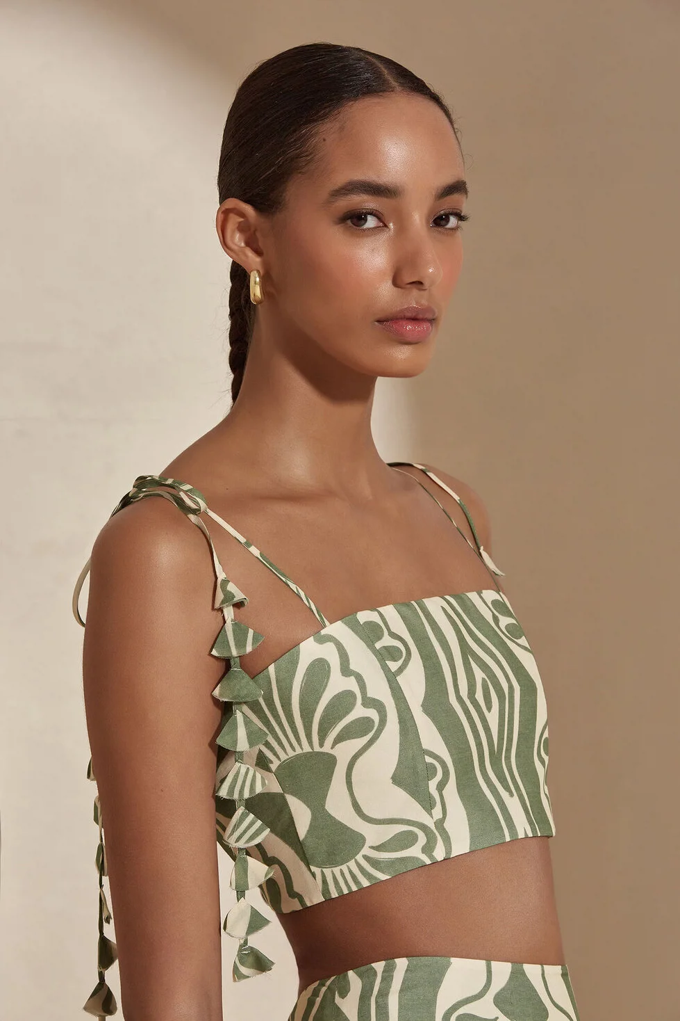 The Raisa Blouse features delicate leaf details along the straps, adding a romantic touch. With its lightweight and elegant design, it seamlessly blends comfort and sophistication for warm summer days.
