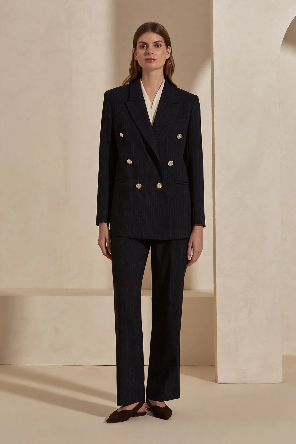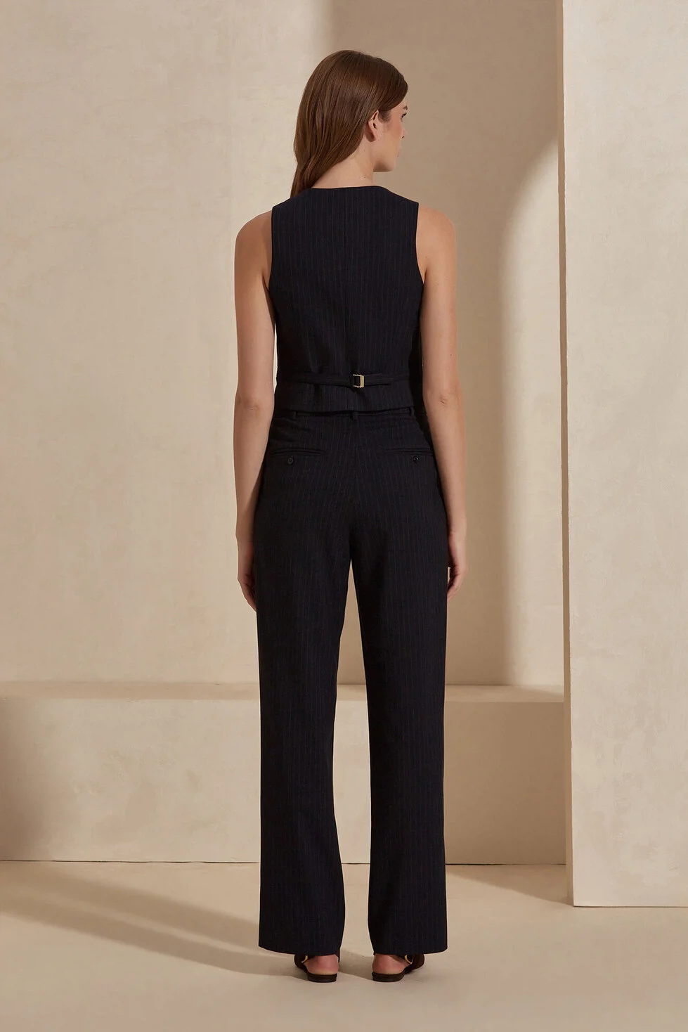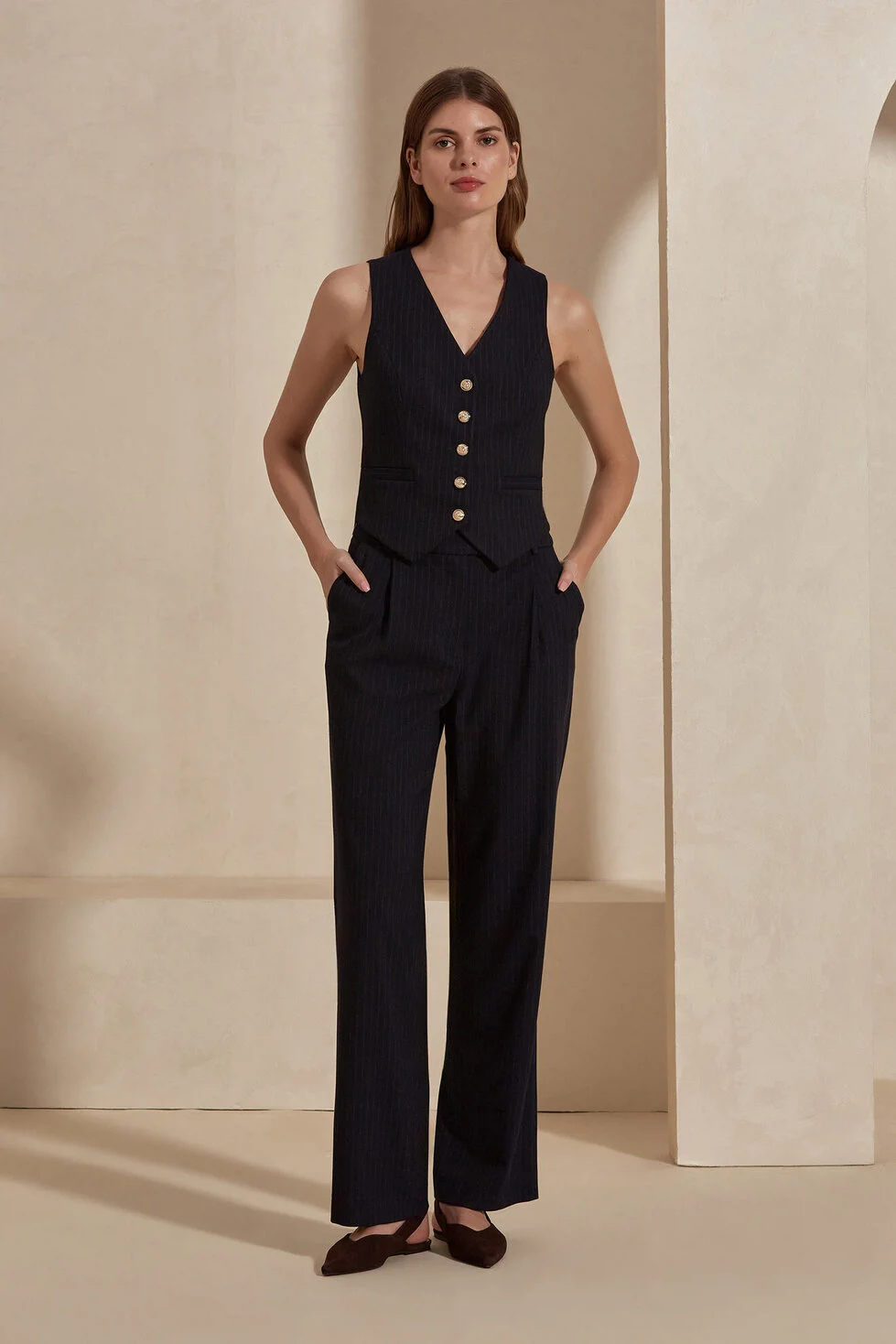 The Raya Pants enhance your elegant silhouette with a flattering high-waisted design. Front pleats add a sophisticated touch, while side pockets offer practicality. With a convenient zip fly and hook fastening, these pants are a stylish and functional choice for your everyday wardrobe.