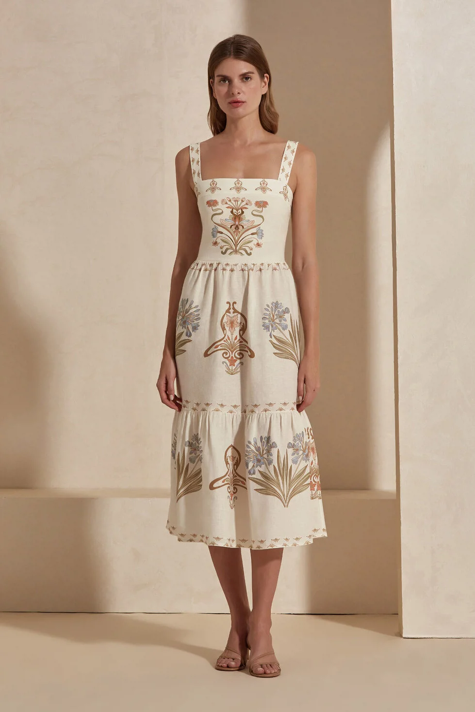 The Rosie Dress blends the natural elegance of 100% linen with sophisticated patterns. Offering a timeless silhouette with its square neckline and relaxed fit, this midi dress promises comfortable elegance even on the hottest summer days thanks to the breathable nature of linen. With its flowing hem detail and sophisticated stance, the Rosie Dress perfectly complements your elegance for both daily urban style and special summer occasions.