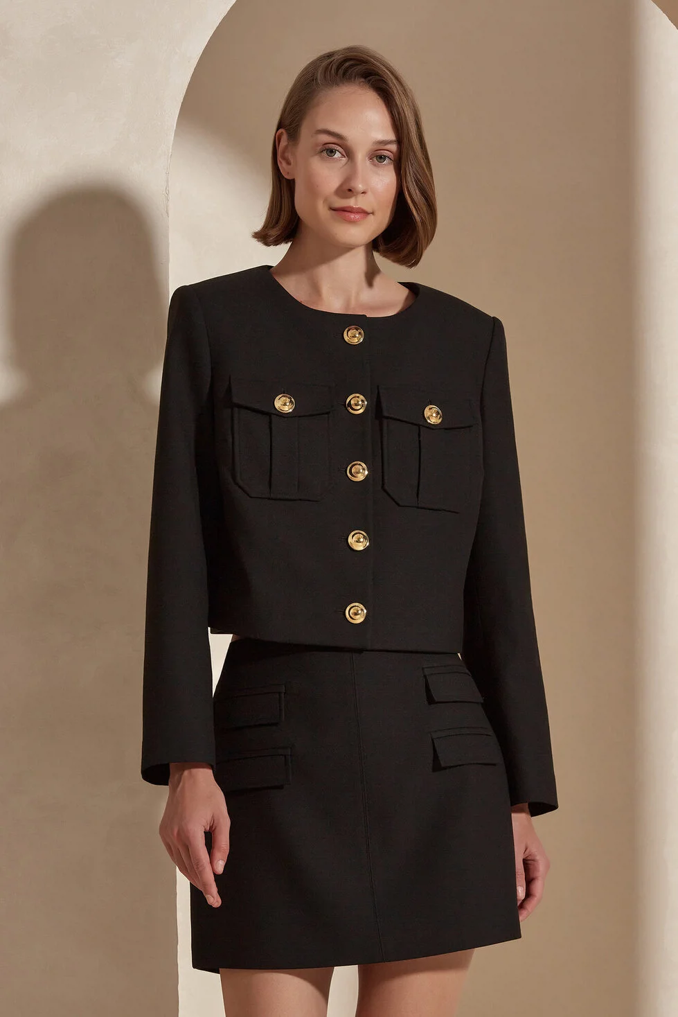 The Zoey skirt draws inspiration from the iconic fashion of the 1960s, incorporating all the classic details that define the era's style. With its darted design, this mini skirt is a versatile piece that can be worn repeatedly with various outfits. Pair it with the matching jacket for a coordinated look or team it up with your favorite shirt to create a unique ensemble.