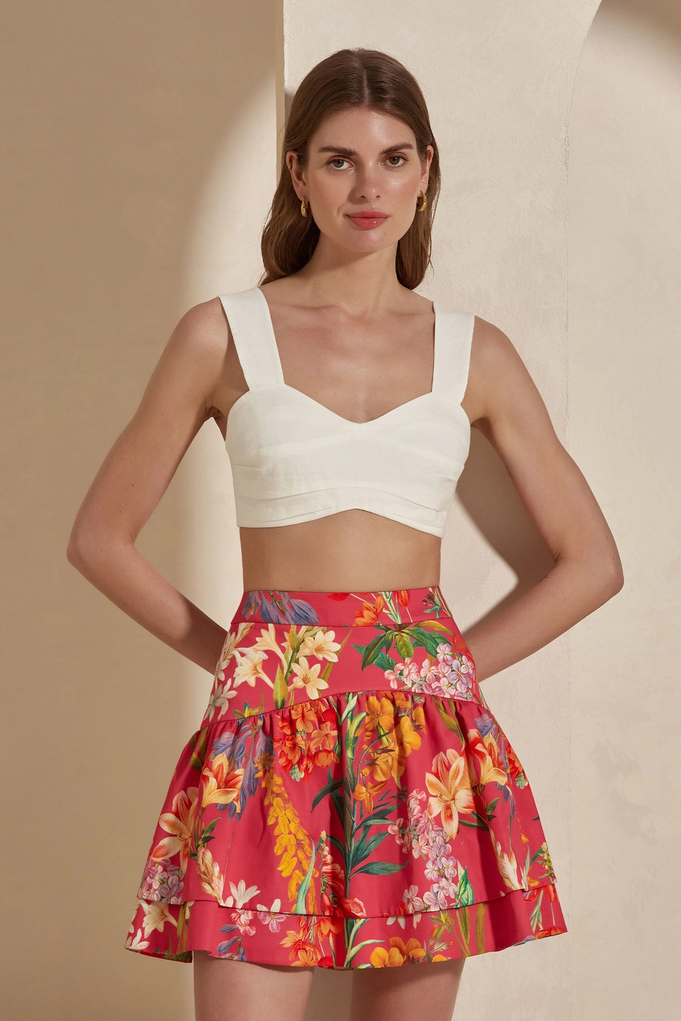 Via etek, vücudu saran bir his sunarken arkasındaki gizli fermuar da konforu artırır. Etek uçlarındaki çift kat volan detayı, şıklığınızı ön plana çıkarır.