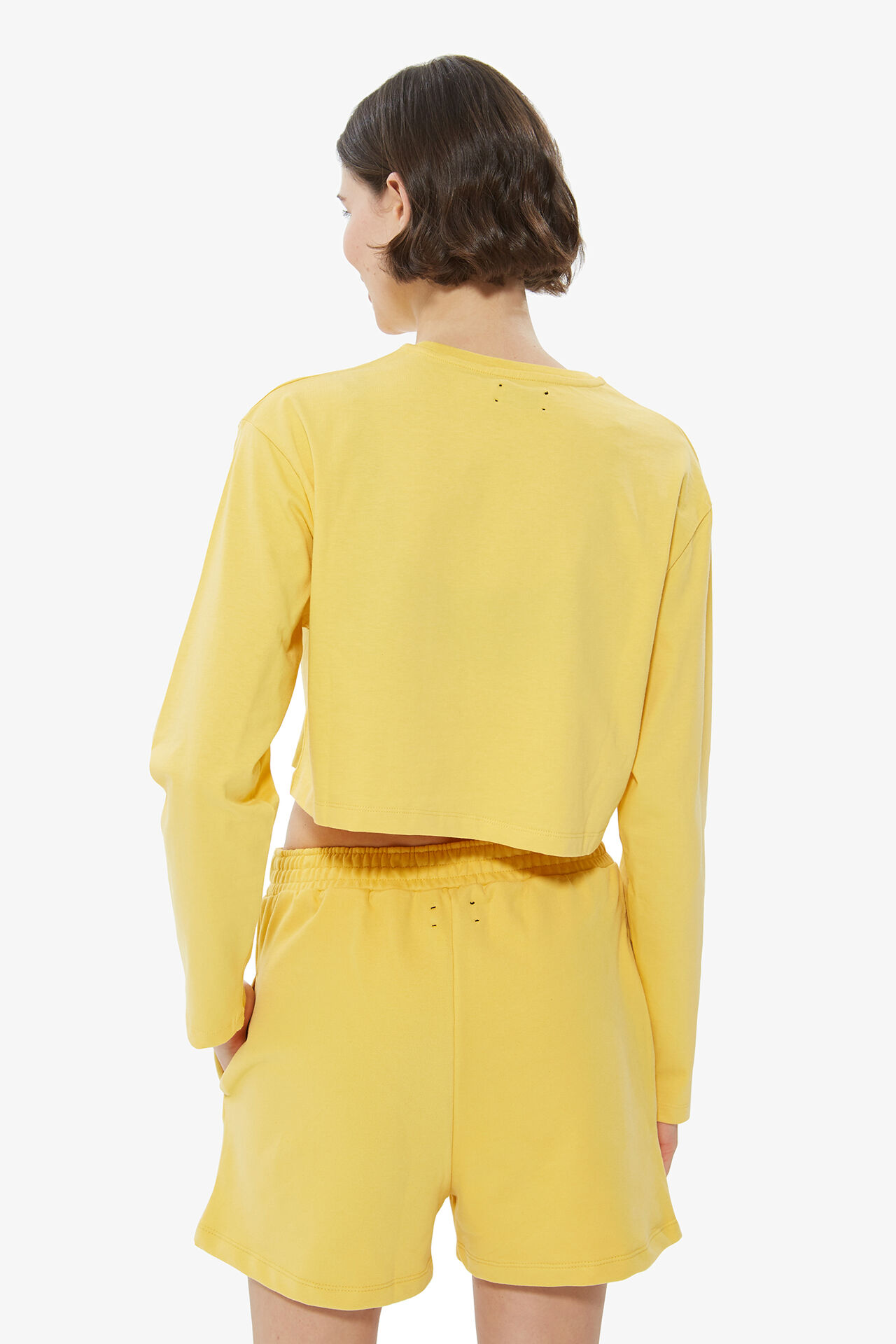 Yellow Crew Neck Long Sleeve Crop T-shirt