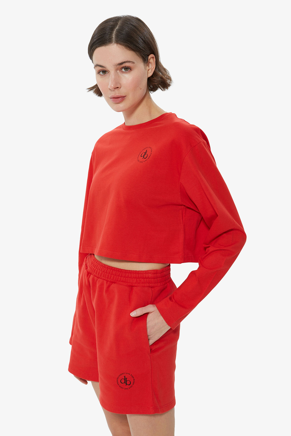 Zamansız bir tarz, canlı renklerin enerjisi ve ikonik 'db' monogramın zarafetiyle harmanlanıyor. Bu crop T-shirt, günlük stilinize modern ve çarpıcı bir hava katıyor.