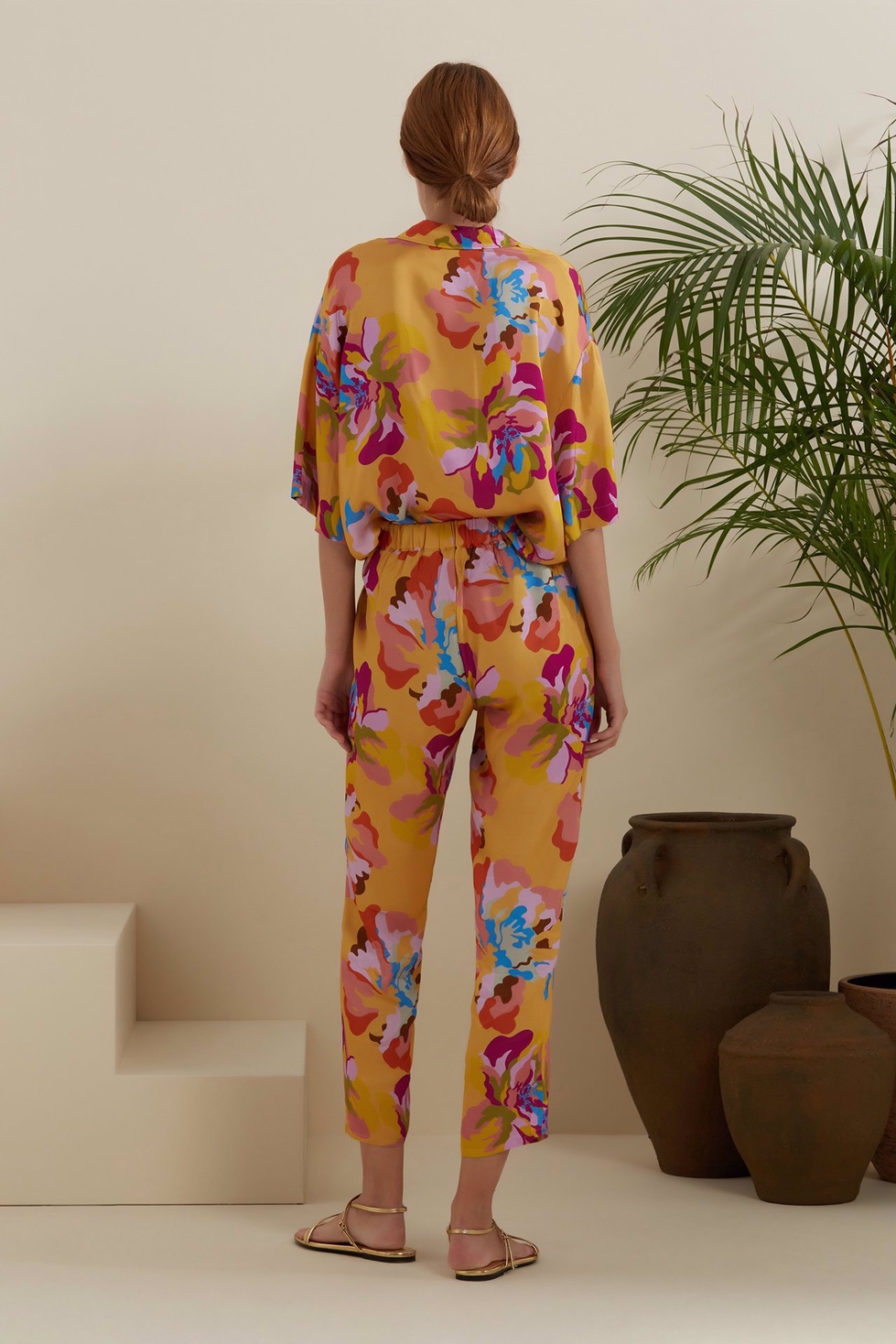 Michelle pants are made of viscose and patterned fabric. Finished with a comfortable elastic waistband. You can reveal your combination stylishly with a Chelsia or Penelope shirt with the same pattern.
