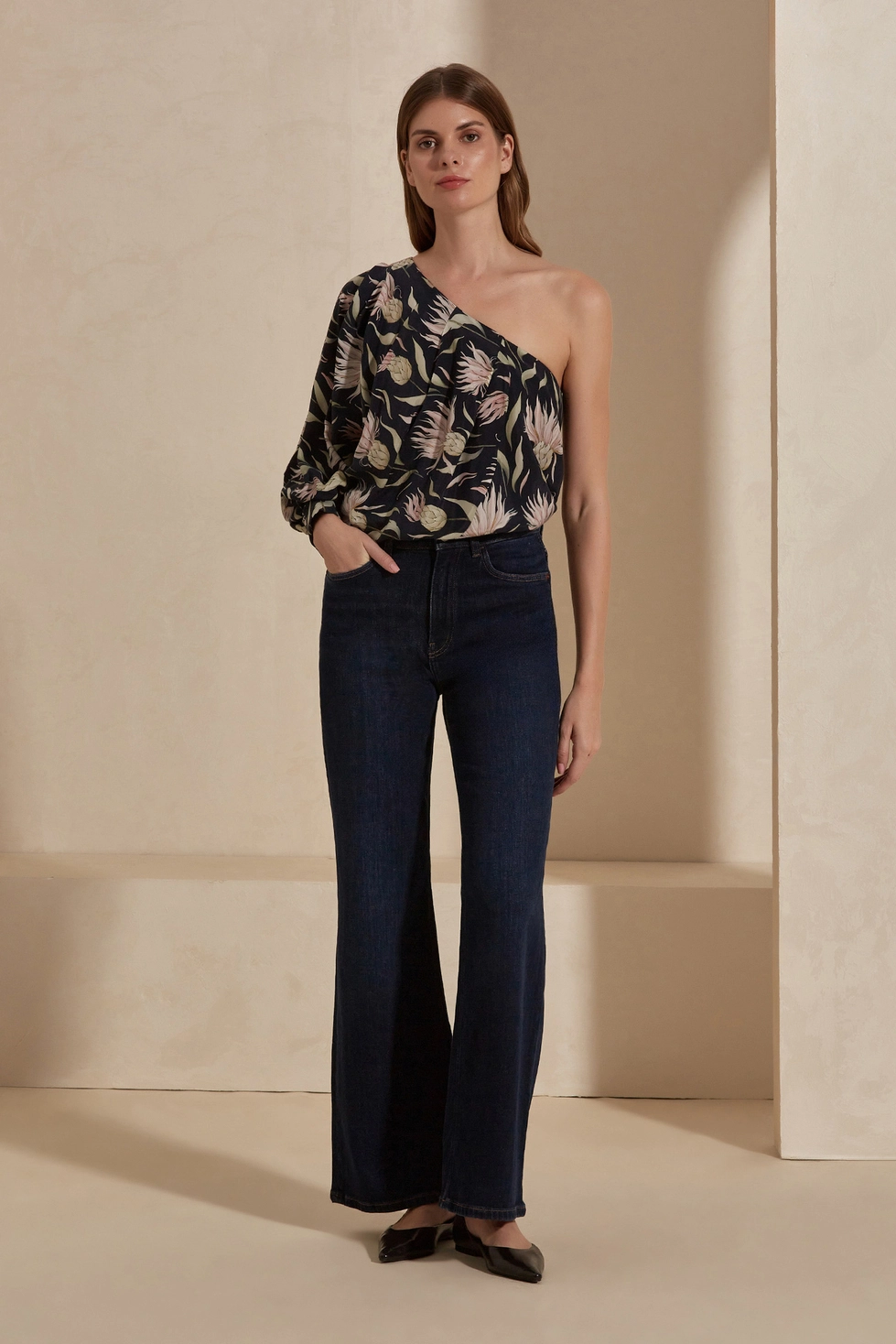 Yüksek bel tasarımı ve flare paça kesimiyle bu jean, hem konfor hem de şıklık sunar. Yüksel bel yapısı, vücuda zarif bir siluet kazandırırken, flare paça detayı retro bir hava katar.