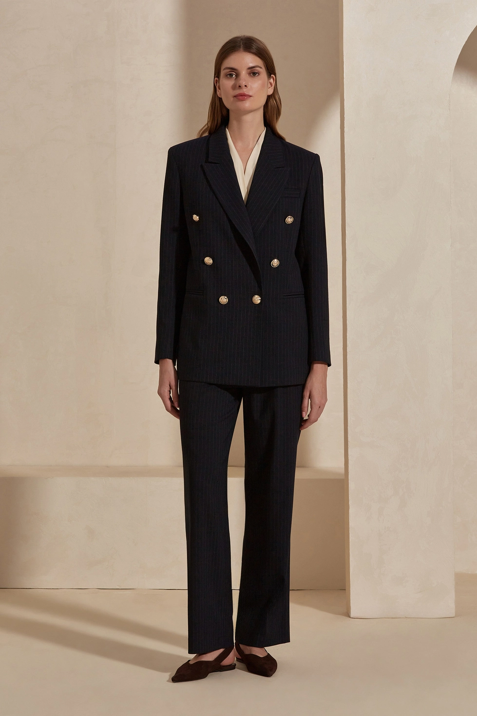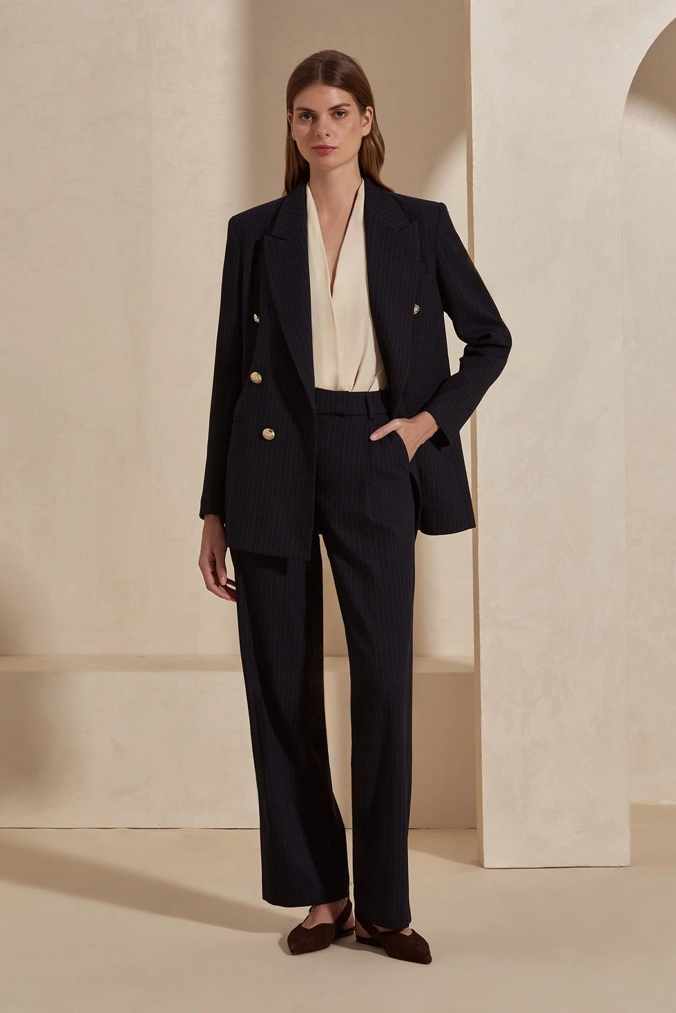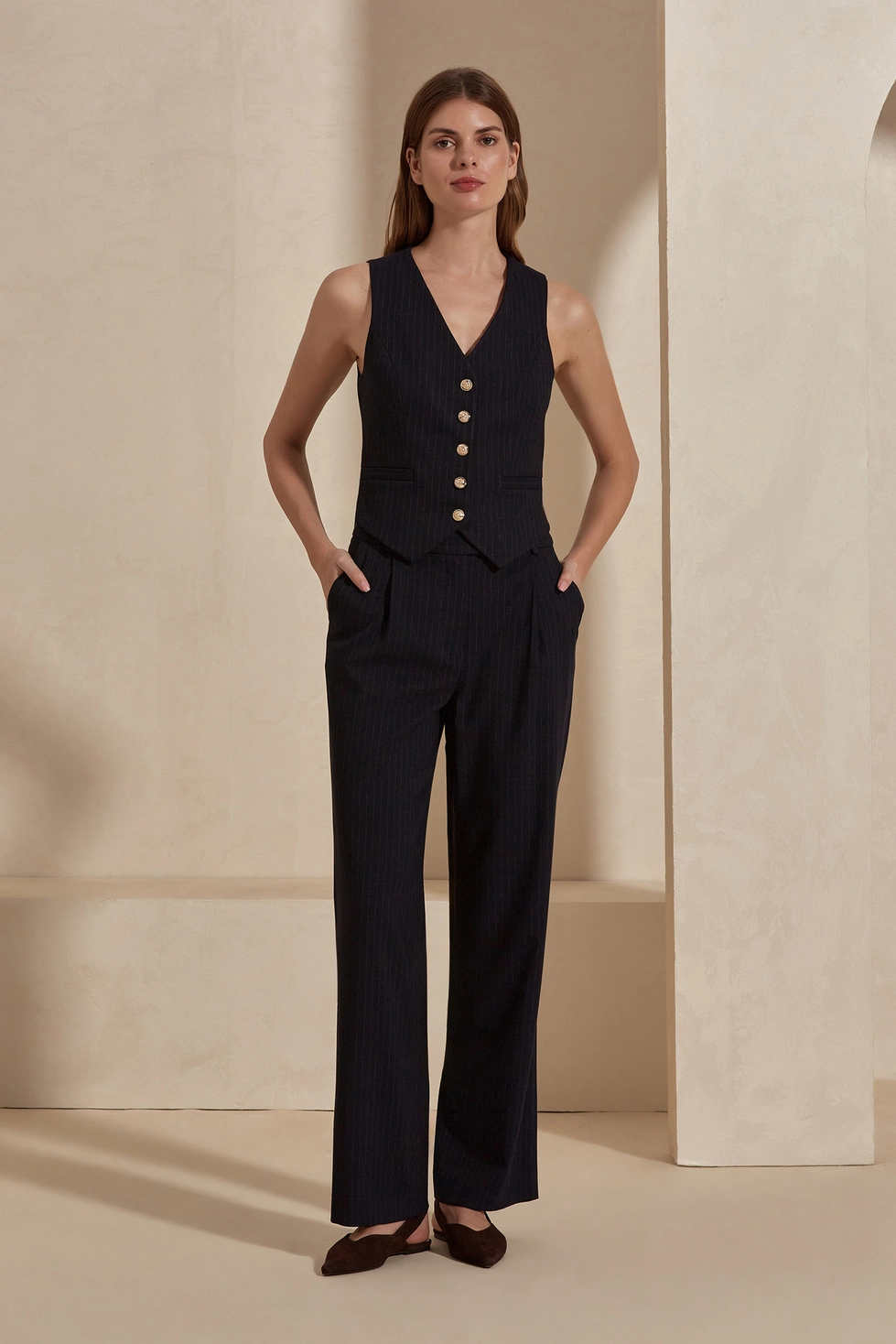 Raya Pantolon, yüksek bel kesimiyle zarif görünümünüzü vurgular. Ön ortada bulunan plise detayları, pantolona şıklık katarken yan cepler de fonksiyonellik sunar. Fermuarlı ve kancalı kapaması, kullanımı kolaylaştırarak günlük stilinize pratik bir dokunuş ekler..