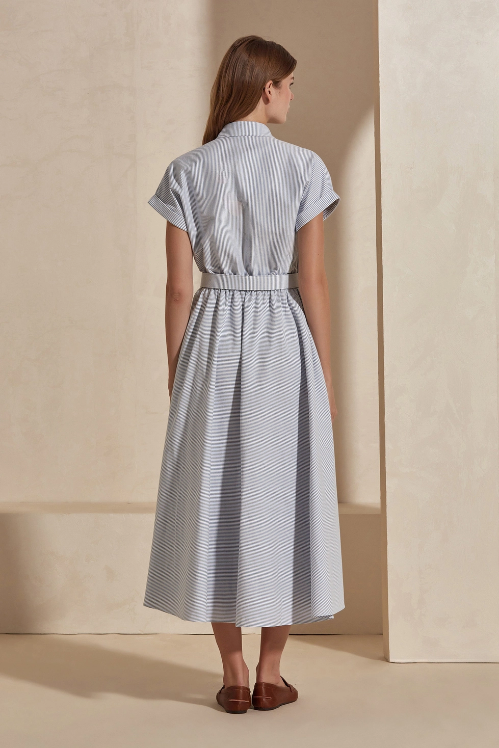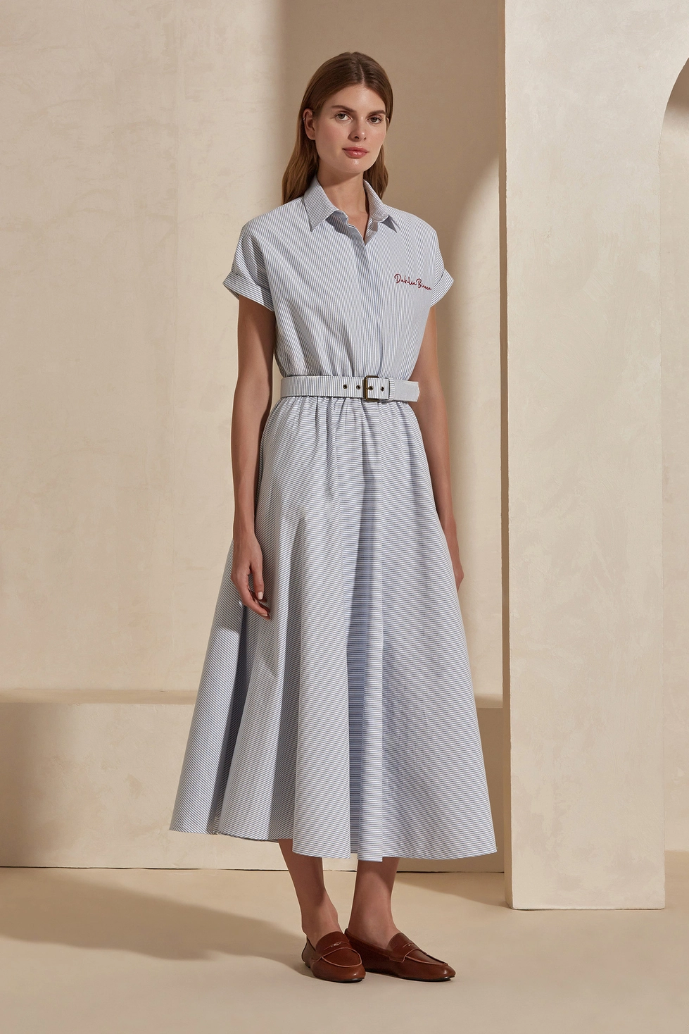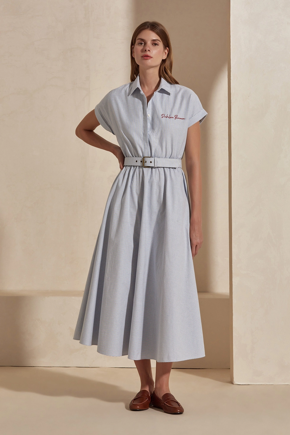 Suzan elbise, belindeki kemerle silueti zarifçe öne çıkarırken, dökümlü eteği akıcı ve elegant bir hareket kazandırır. Göğüs kısmındaki Dahlia Bianca nakışı ise tasarıma özgün ve karakterli bir dokunuş ekler.