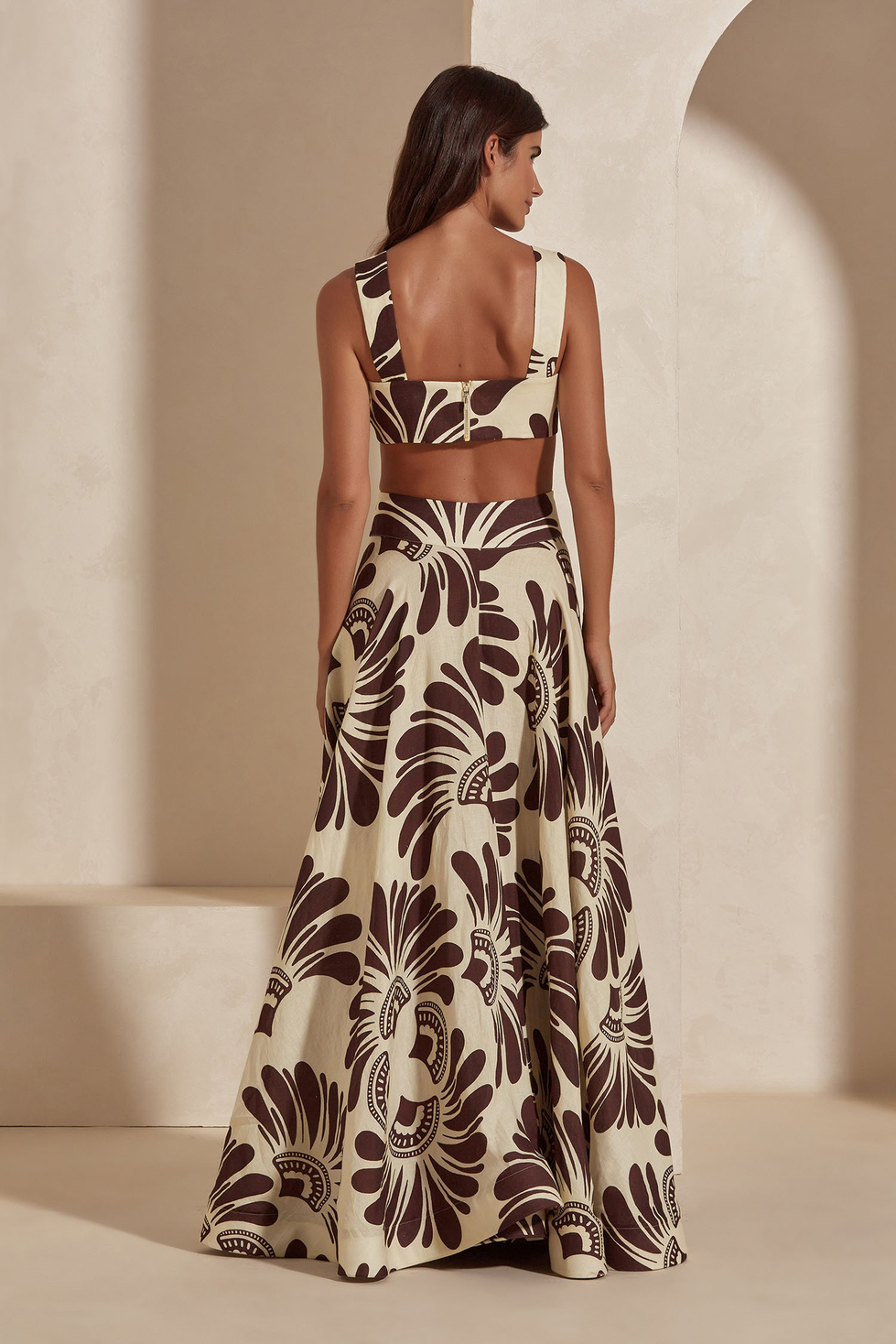 Tamina etek, zamansız bir şıklık anlayışıyla tasarlanmıştır. Etek ucu, zarif gren detaylarıyla hareketlendirilmiştir. Aynı desende Leighton bluz ile şık bir kombin oluşturabilirsiniz.