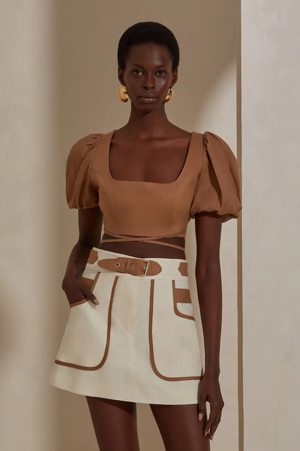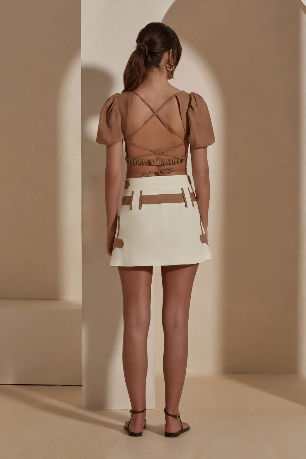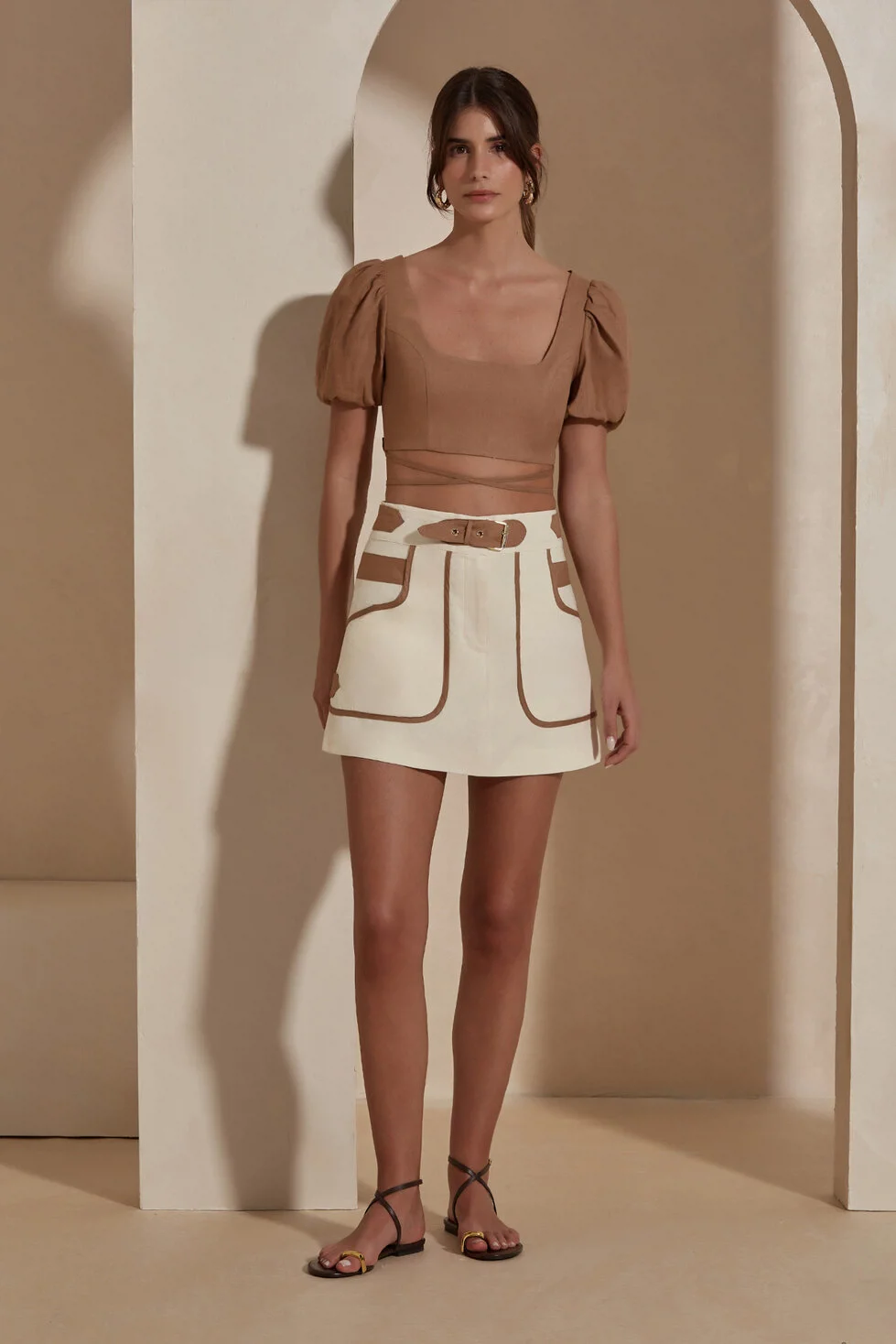 Arya Etek, mini boyuyla çağdaş bir tarz sunarken, ön fermuarlı tasarımıyla da kullanım kolaylığı sağlar. Ayrıca, kendine özgü kemer detayıyla belinizi vurgular ve siluetinize estetik bir tamamlayıcı özellik katar.