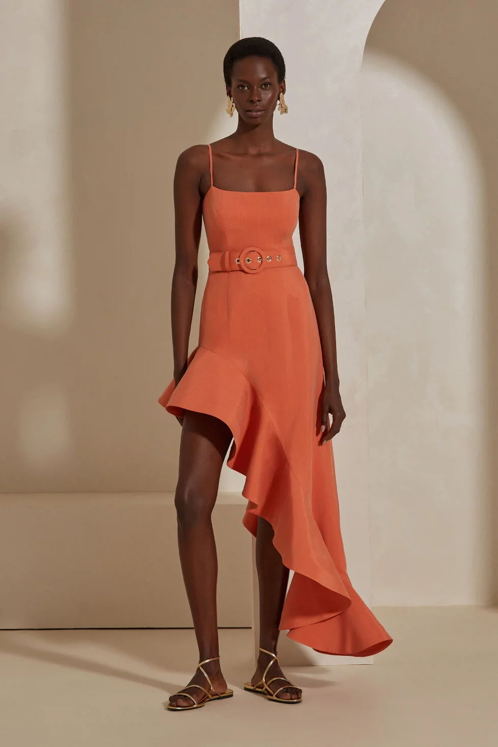 Carrie Elbise, yazın sıcak günlerinde hafif yapısıyla gün boyu konfor sağlarken, stilinizi ön plana çıkarmanıza yardımcı olur. Spagetti askıları ve asimetrik eteğiyle modern bir görünüm sunar. Etek ucu volan detayıyla hareketlilik kazanan bu elbise, her tarza ve her ortama uyum sağlar.
