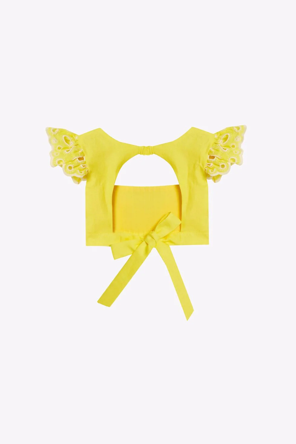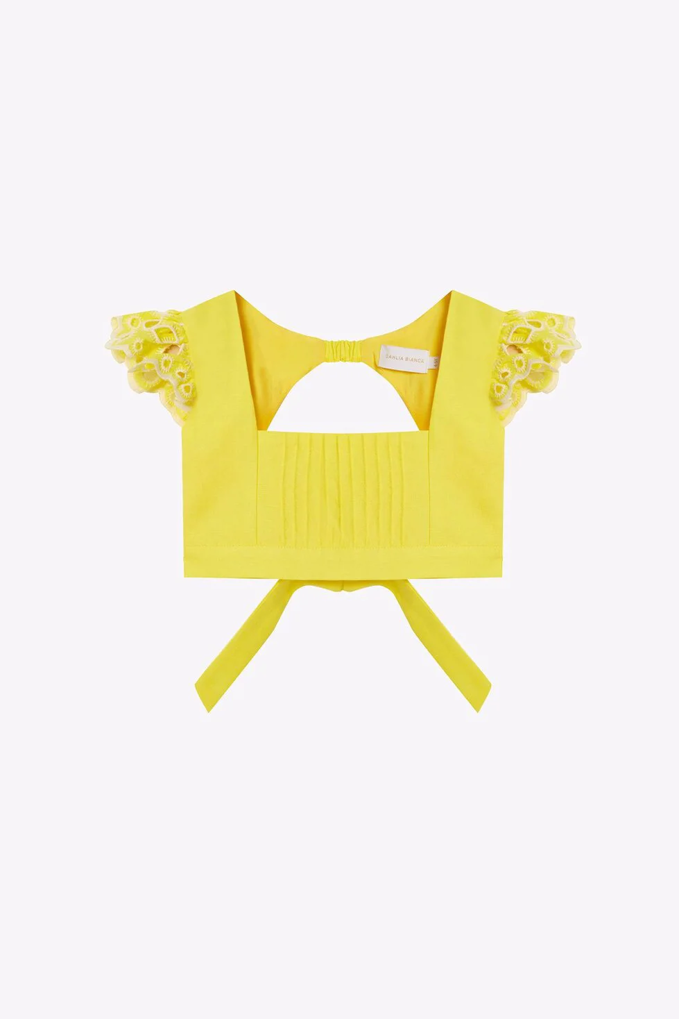 Dahlia Bianca'nın kadın ve çocuk koleksiyonu için hazırladığı Lily bluz kare yakalı, ön kısmı pilili, omuzları fırfırlı ve arkası açık bağcık detayıyla miniklerin vücuduna göre ayarlanabiliyor.