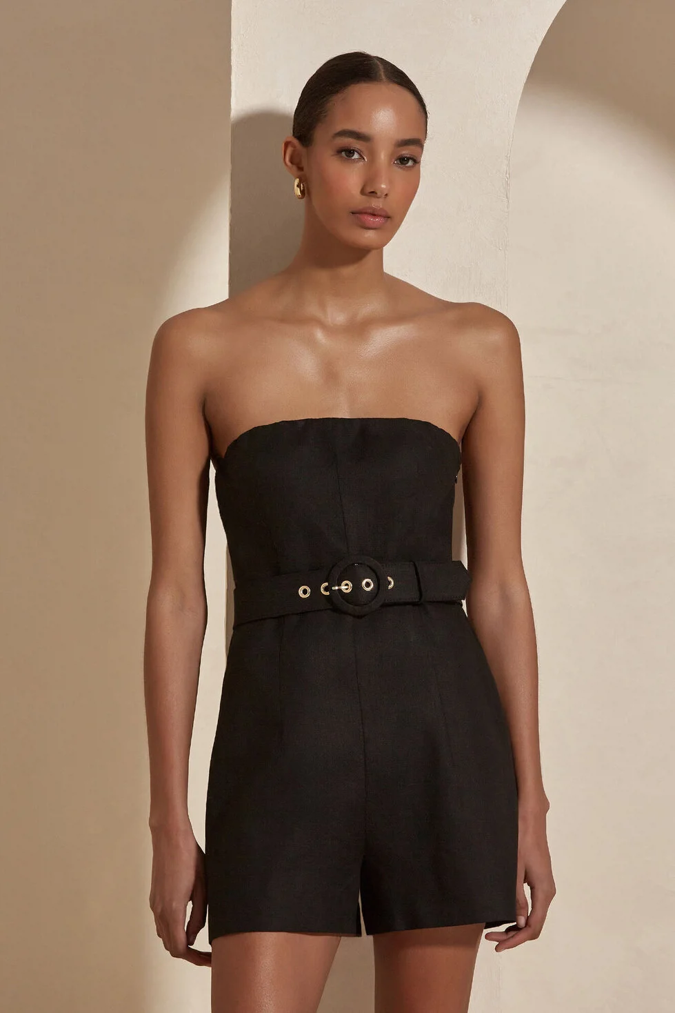Halston Mini Tulum, vücuda oturan üst kısmıyla dikkat çeken bir parça. Basit ve zarif bir tasarıma sahip olup sırtı açık bir bantla tutturulur. Gardırobunuzun temel parçalarından biri olan bu tulum, birçok farklı durum için uygun. Şıklık ve rahatlık arayanlar için ideal bir seçenek.