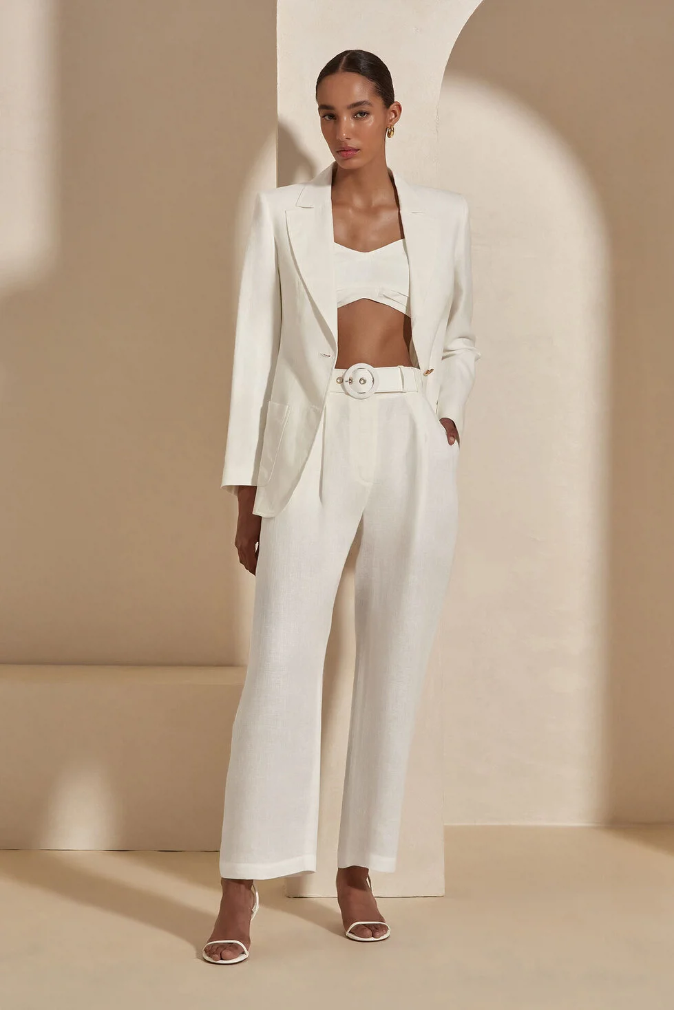 Leighton bluz , doğadan ilham alan rengi ile ketenden yapılmıştır. Kalp şeklinde bir yaka, kalın askıları ve ön bölümünü dikiş oyunları ile harmanlayan bluz vücuda tam oturacak şekilde tasarlanmıştır. Büyük boy bir blazerin içine giyin ya da yüksek bel altlarla kombinleyin ..