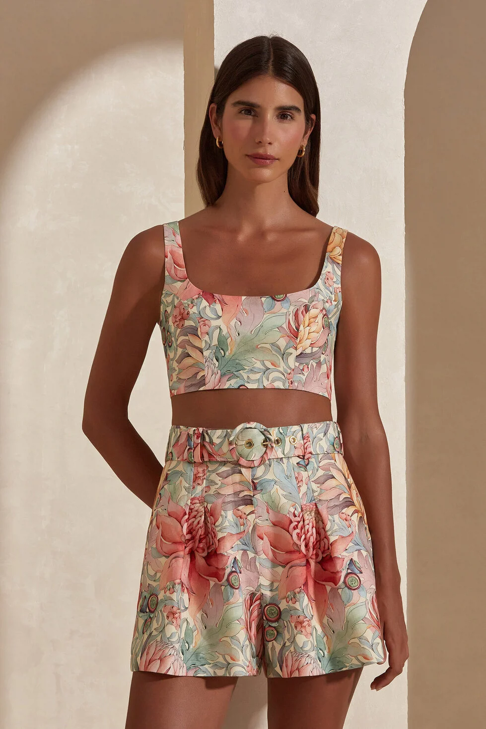 Lilith Şort, yazın o en sevdiğimiz hafifliğini %100 keten dokusuyla teninize taşıyor. Yüksek beli ve tasarımı tamamlayan tokalı kemeriyle hem çok rahat hem de karakterli bir duruşu var. Üzerindeki çiçek desenleri, ketenin doğal matlığıyla birleşince ortaya tam bir yaz hikayesi çıkıyor. Özellikle Ruth Bluz ile takım yapıldığında yakaladığı bütünlük, onu sezonun en favori ve en doğal parçalarından biri yapıyor. Gün boyu nefes alan kumaşıyla, stilinizden ödün vermeden serin kalmanın keyfini çıkarın.