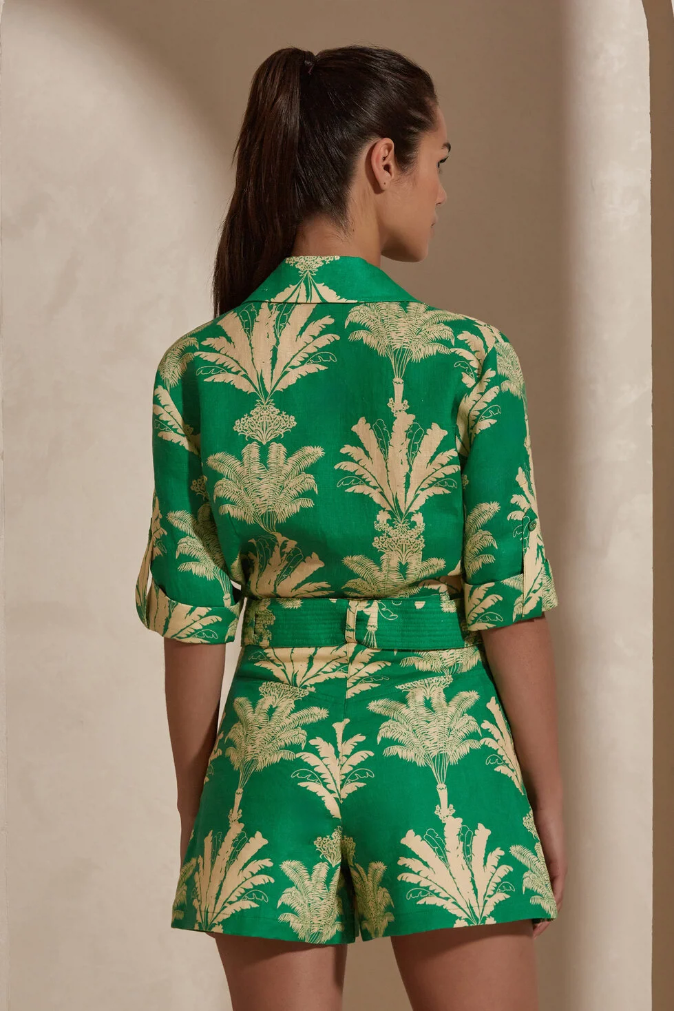 Lyric gömlek, öne çıkan kısa kollu tasarımı ve çift kat dönme kol kenarıyla dikkat çekiyor. Önünde bulunan cep detayıyla pratiklik sunarken, canlı palmiye deseni ve yeşil tonuyla göz alıcı bir görünüm sağlıyor. Bu gömlek, tarzınıza hareketlilik katmanın yanı sıra rahatlığı da garanti ediyor.
