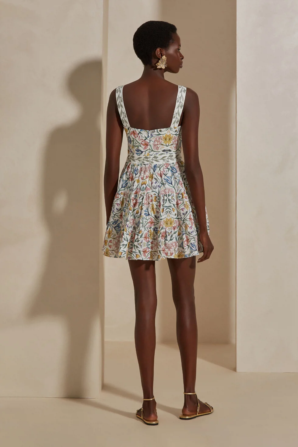 Nadia Elbise, çiçek desenli keten kumaştan üretilmiş olup, bel kemerinde ve askılarında bulunan nakış detayıyla zarif bir hava katmaktadır. Kalın askıları ve hareketli eteği ise kullanıcıya rahatlık ve özgürlük sunar.